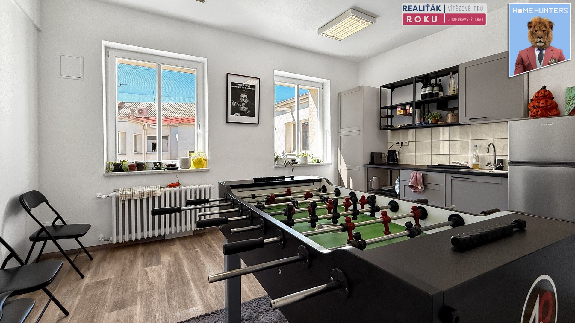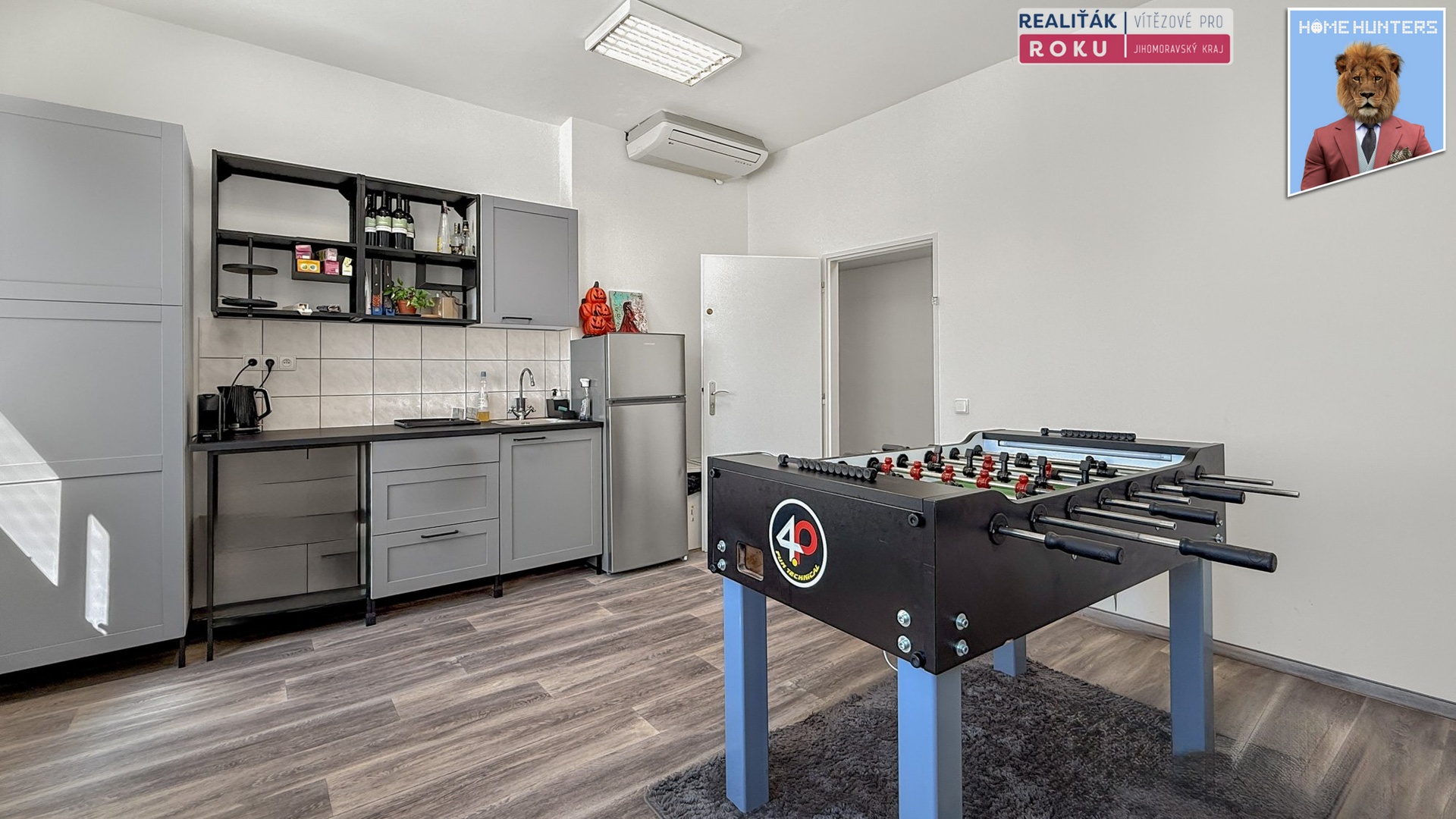 Součástí prostor je také společenská zóna s kuchyňkou – vhodné zázemí pro interní setkávání, pauzy i neformální porady.