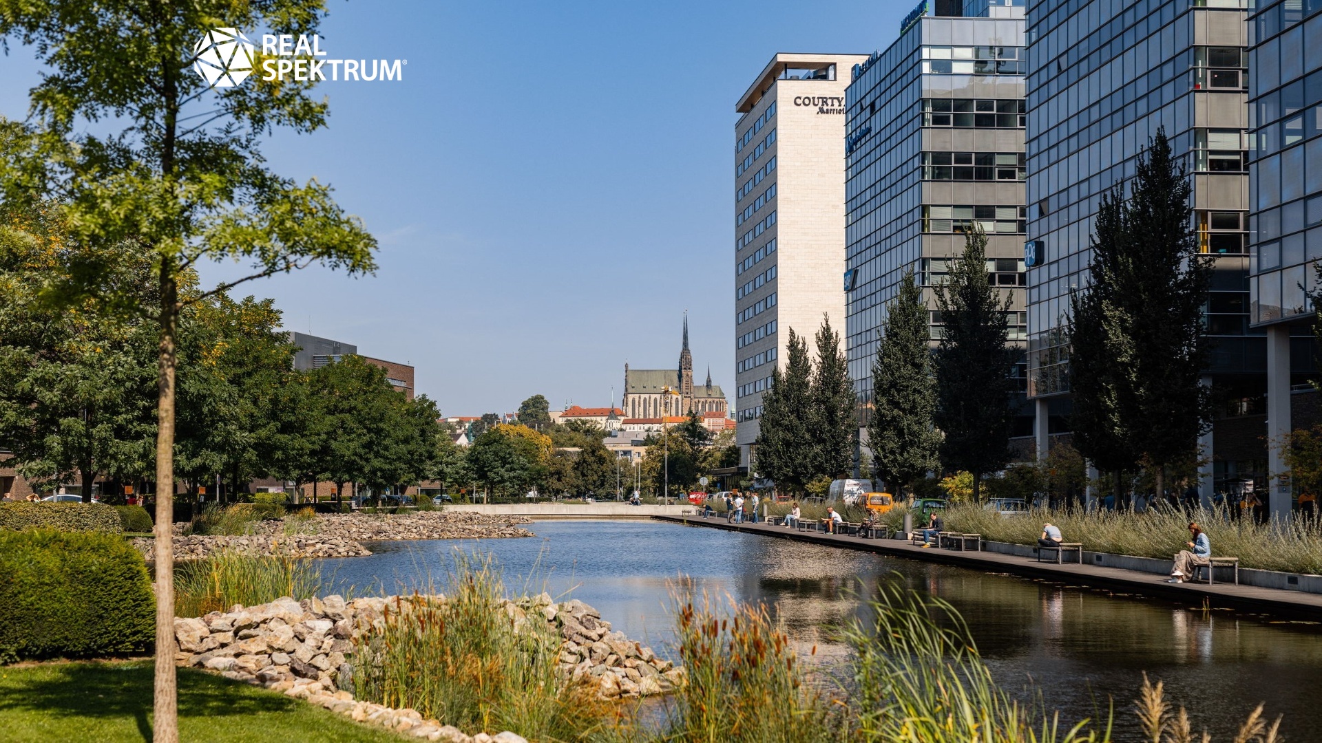 Pět stylových vil podél heršpické ulice je citlivě zasazeno do okolního prostředí jezírek a zelené plochy. Čtyři chytré budovy IQ tvoří propojený blok na druhé straně jezírka. Dominantou jsou pak Tower I. a Tower II. Celý areál nabízí také nadstandardní ubytovací i komerční zázemí v podobě hotelu Courtyard by Marriott.