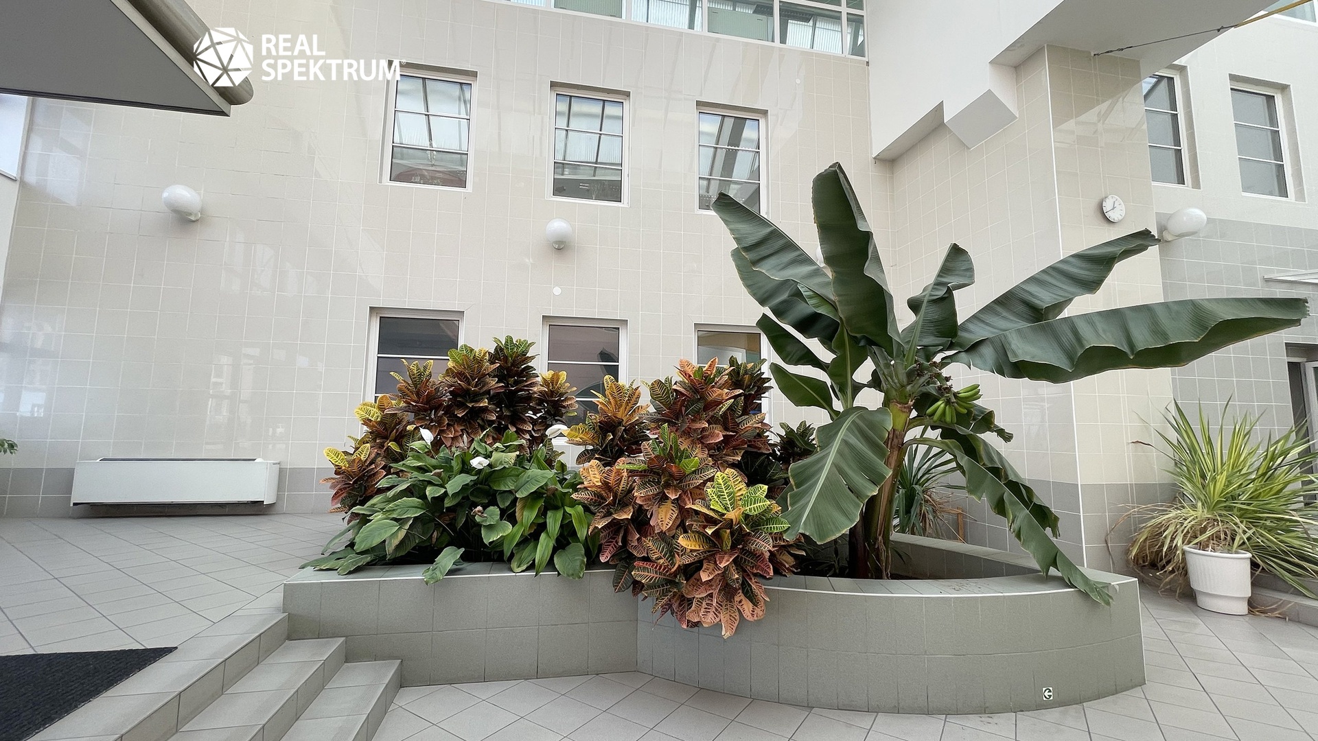 V přízemí jsou 2 atria s klidovou zelenou zónou k relaxaci zaměstnanců.