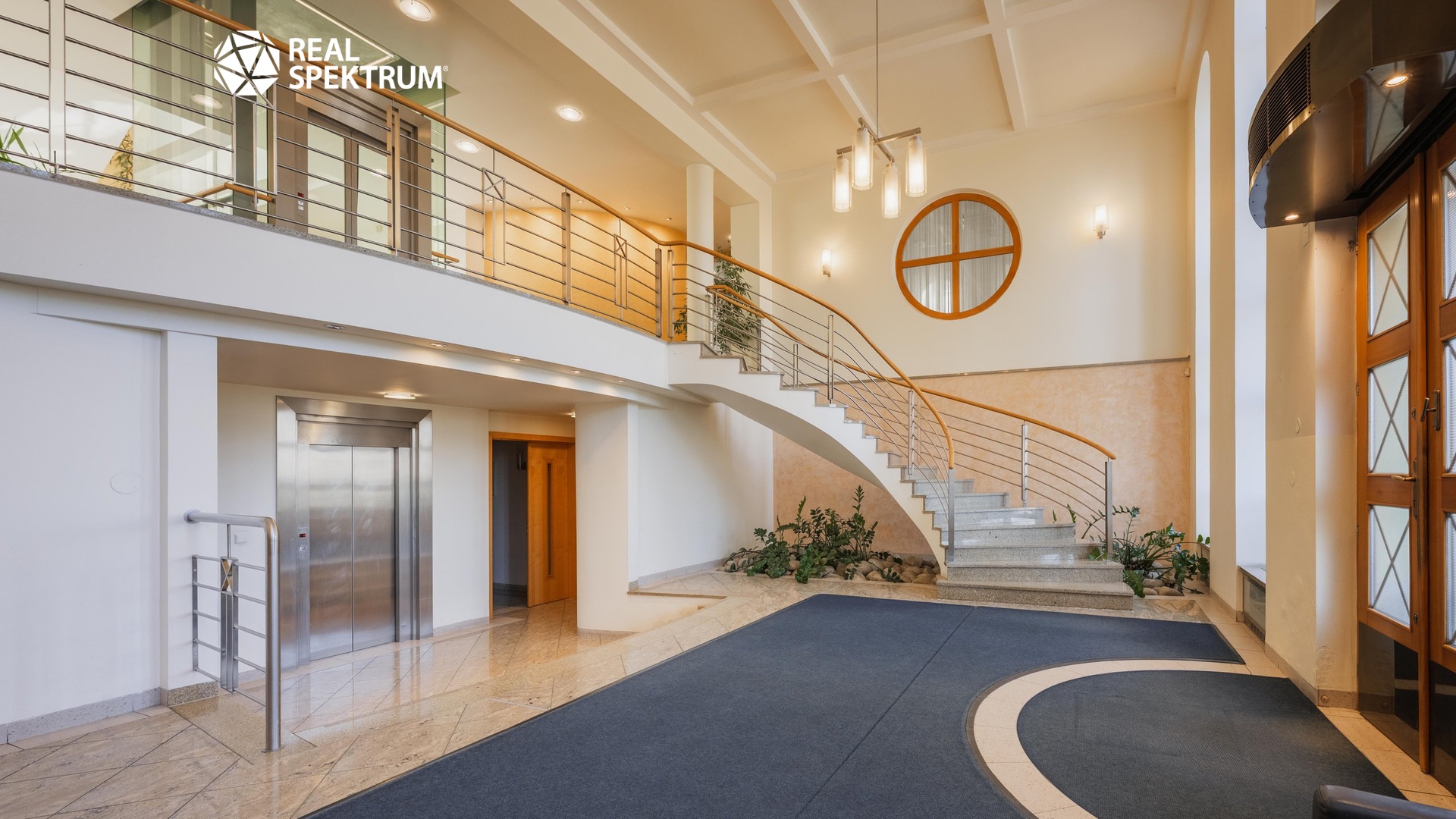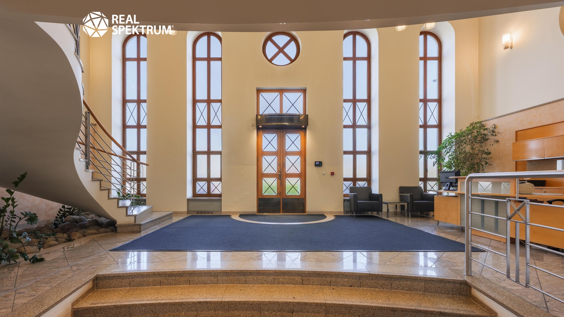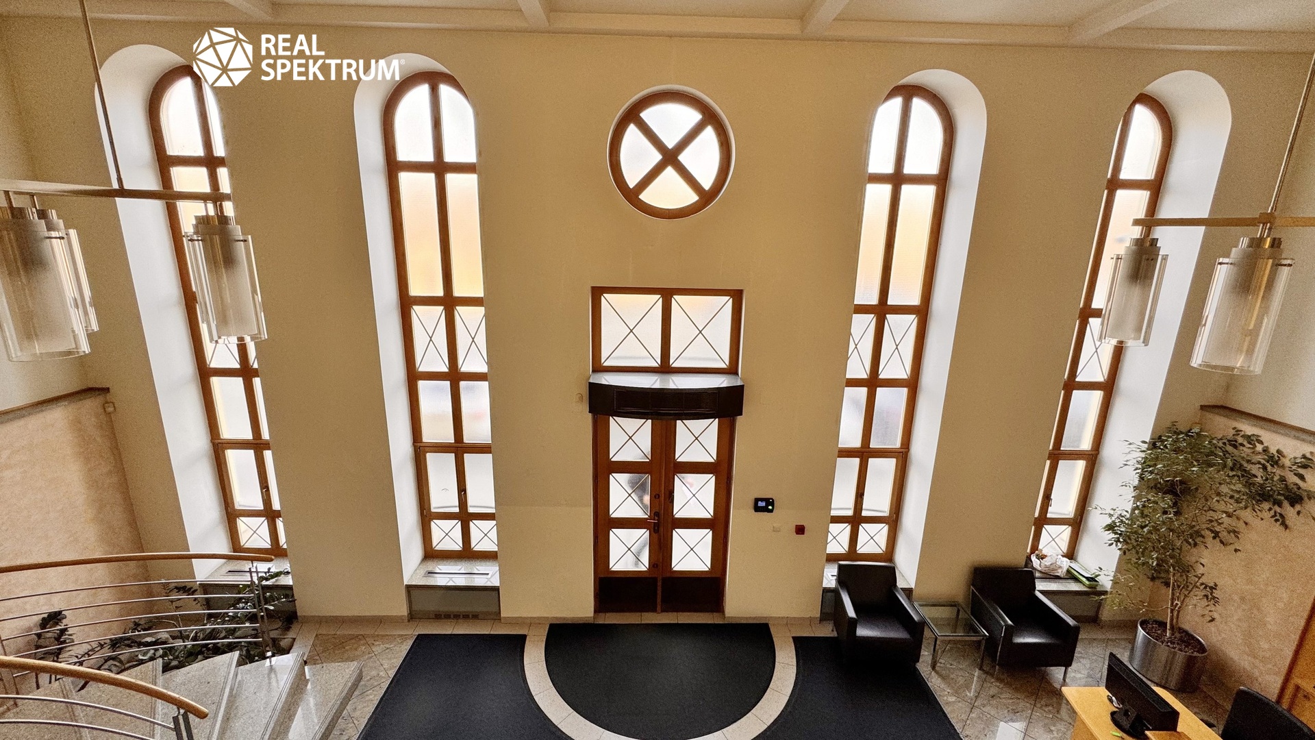Dispozice nabízí kombinaci několika samostatných kanceláří různých velikostí, centrální komunikační chodbu, zasedací místnost a kompletní sociální zázemí včetně kuchyňky. Prostor je vhodný pro administrativní sídlo firmy i rozdělení jednotlivých týmů do oddělených kanceláří. Díky rohové poloze budovy a velkému počtu oken jsou kanceláře velmi dobře prosvětlené denním světlem, což vytváří příjemné pracovní prostředí. Patro je přístupné po hlavním schodišti i výtahem.