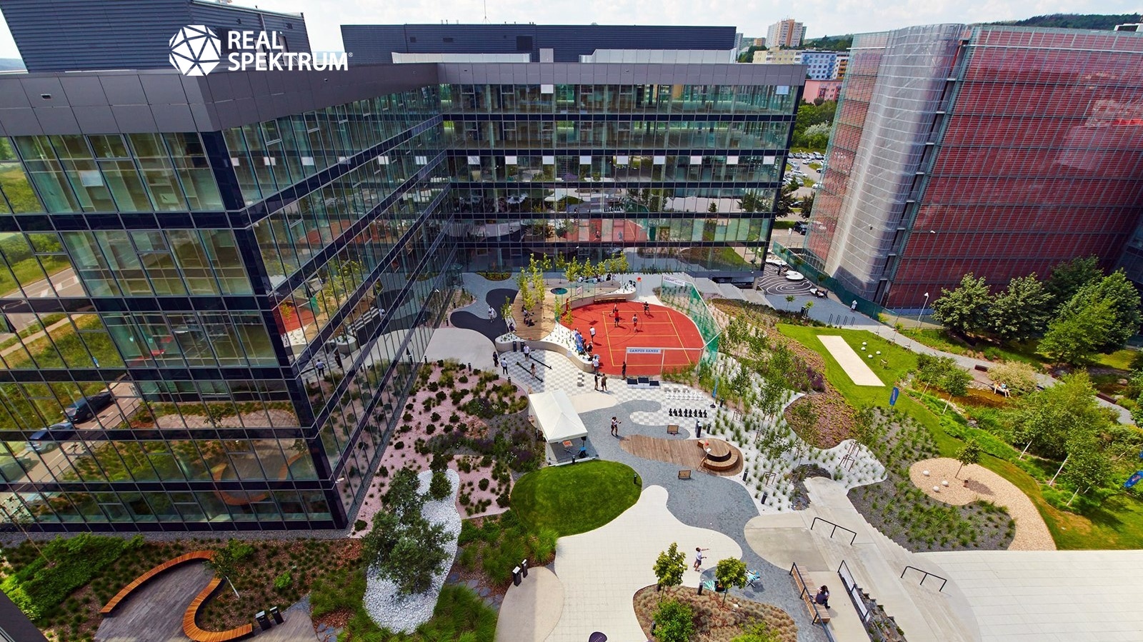 Součástí komplexu je moderní lobby, venkovní sportovní hřiště a pestrá nabídka občerstvení – restaurace, kavárny a další služby v bezprostředním okolí.