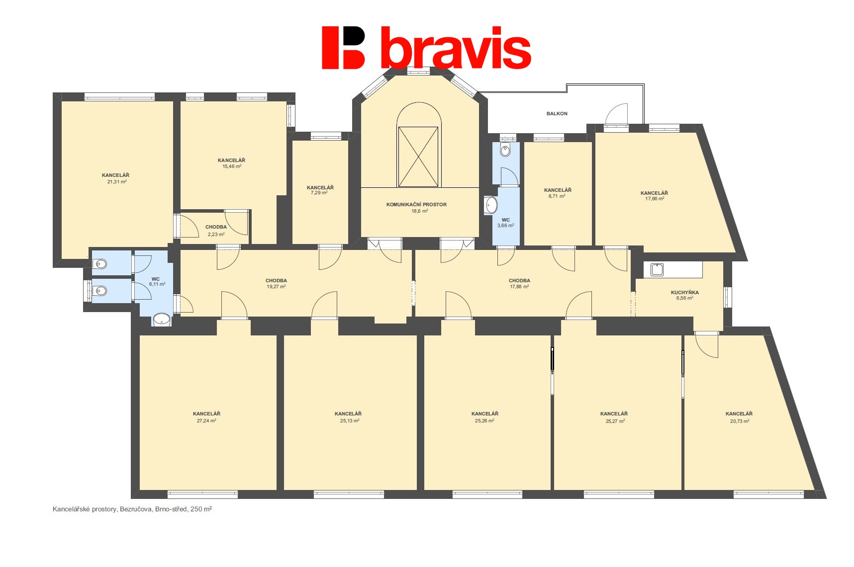 Pronájem kancelářských prostor, ul. Bezručova, Brno - Staré Brno, zrekonstruované, výtah