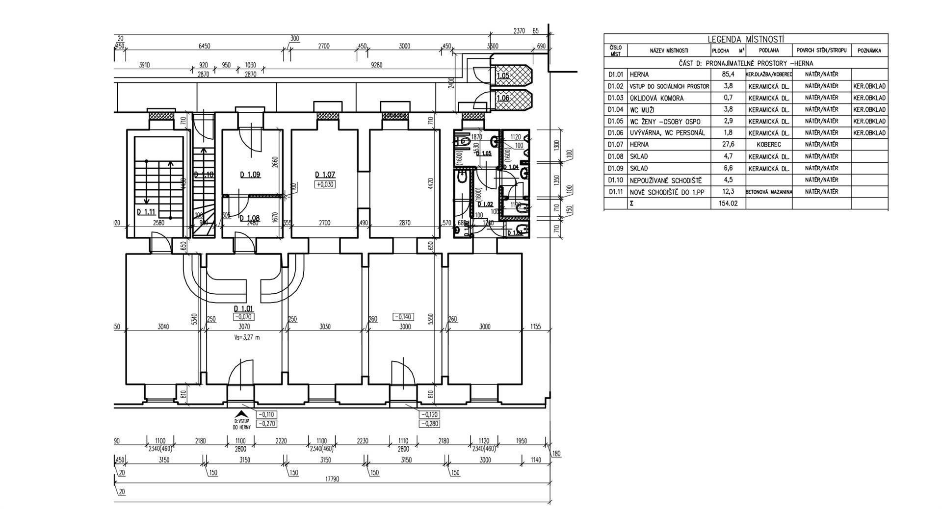 Součástí prostoru je prodejní prostor, toalety a prostor pro sklad/zázemí. Prostor má výměru cca 155m2. K prostoru je možné pronajmout také prostor o výměře cca 144m2 v suterénu. 1PP může sloužit jako zázemí pro provoz či jako součást provozu, např. jako další místa k sezení, pořádání akcí apod. Ve sklepních prostorech je i vlastní sociální zařízení. Po domluvě je možné se domluvit na pronájmu a využití volného venkovního prostoru za komerčním prostorem například pro zřízení zahrádky apod.