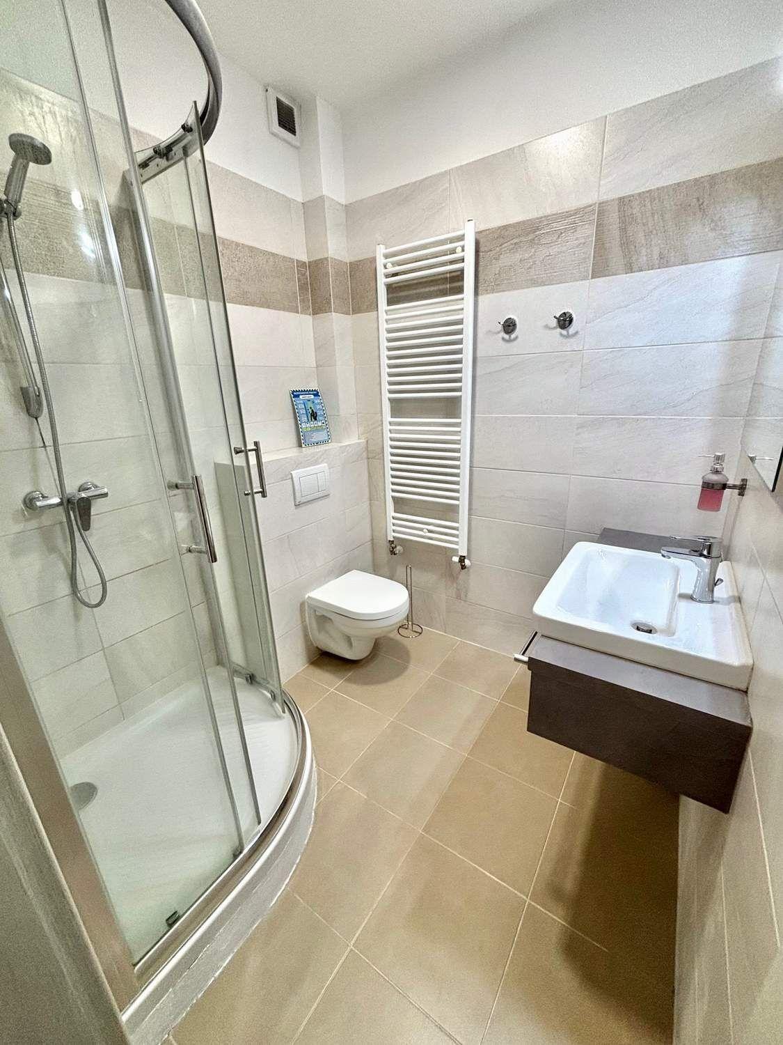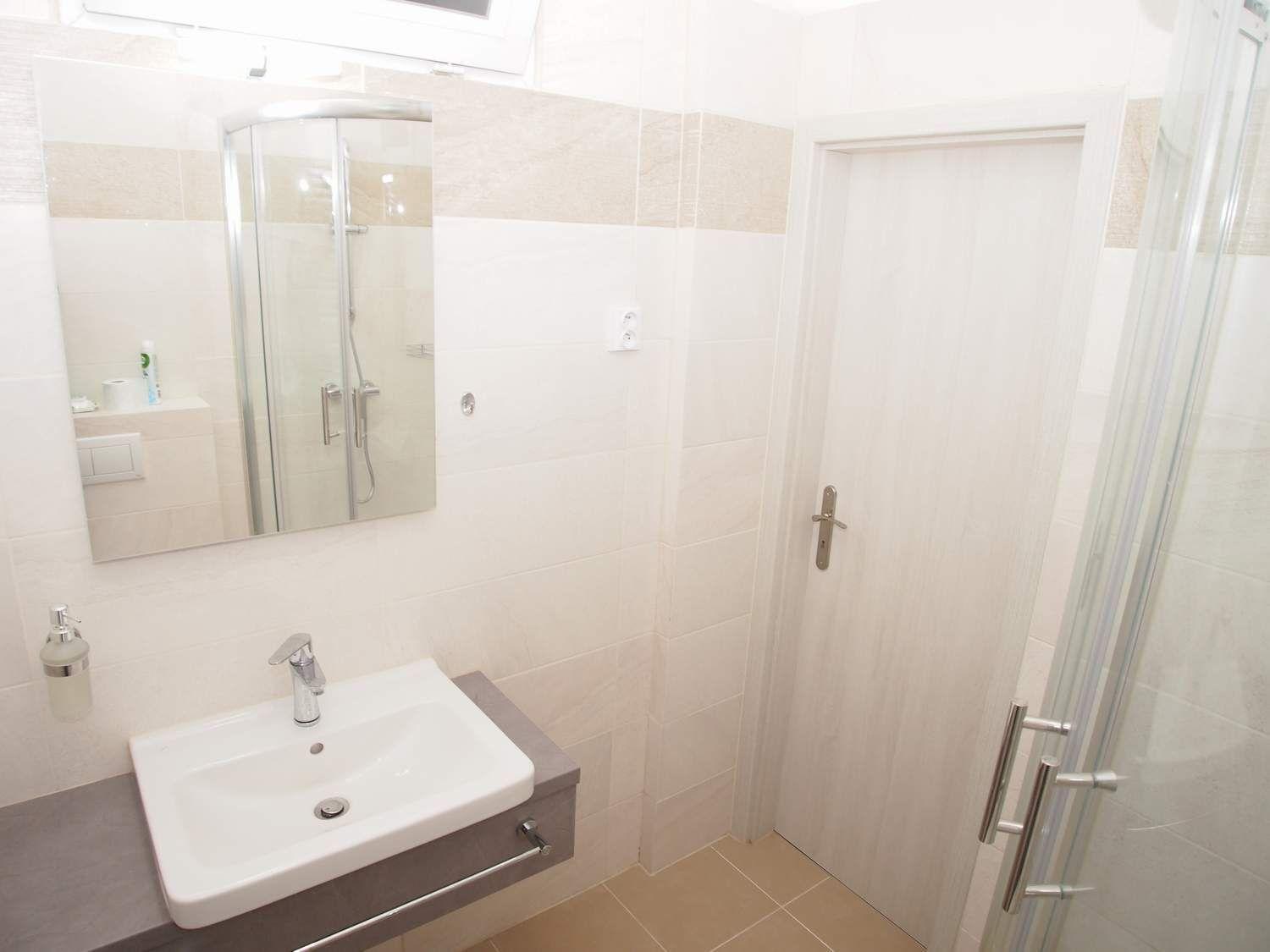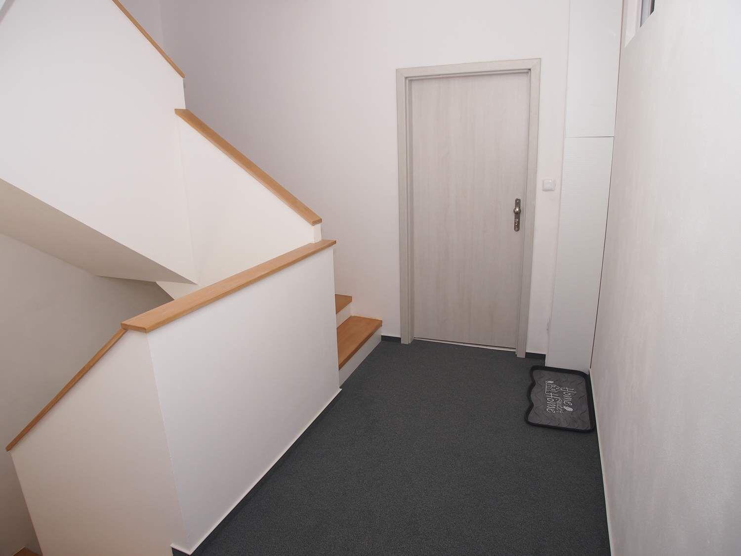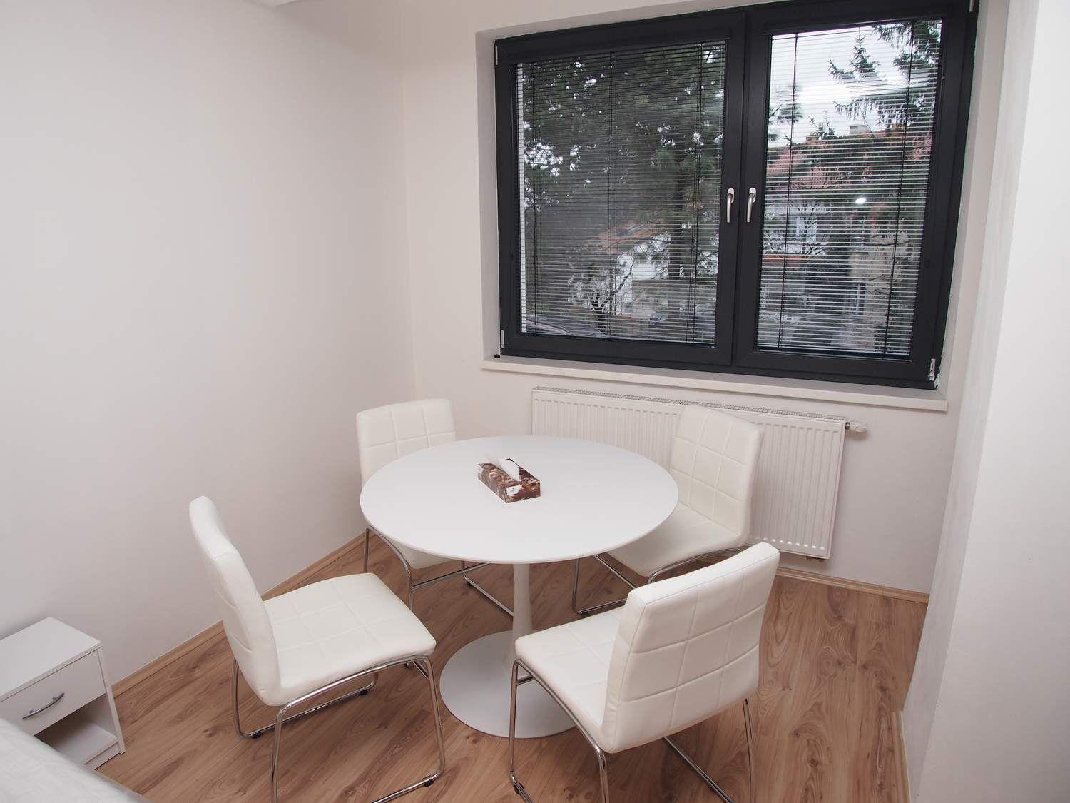 Menší apartmánový dům, pouze s 5-ti byty, nabízí klidné bydlení ve vilové části města. Apartmán 30m2 je vybaven kuchyňkou se sklokeramickou varnou deskou, lednicí, mikrovlnnou troubou, rychlovarnou konvicí, základním nádobím, TV, dvoulůžkem, rozkládací sedačkou s možností dalšího přespání, šatní skříní, vlastní koupelnou se sprchovým koutem a WC.