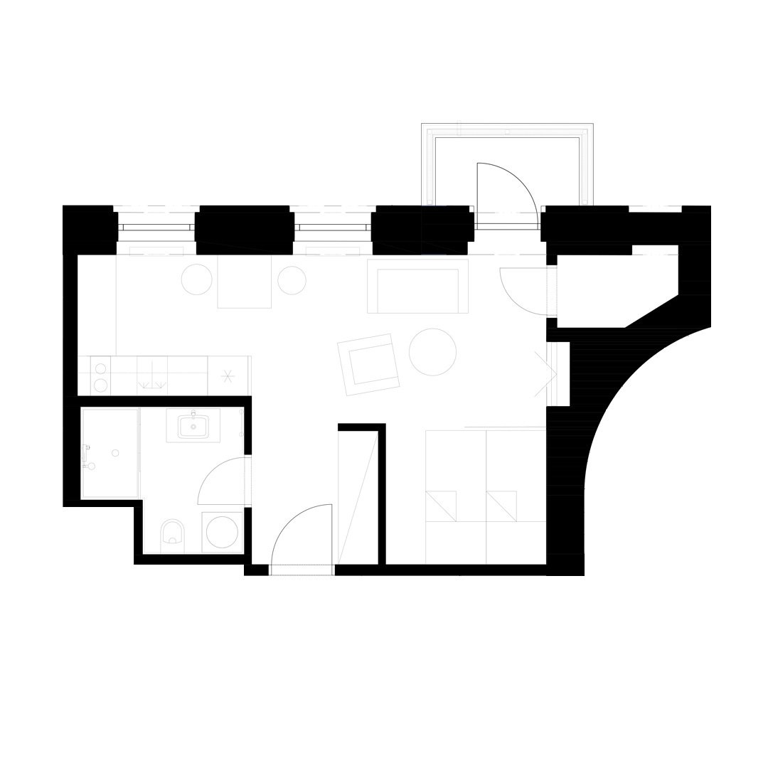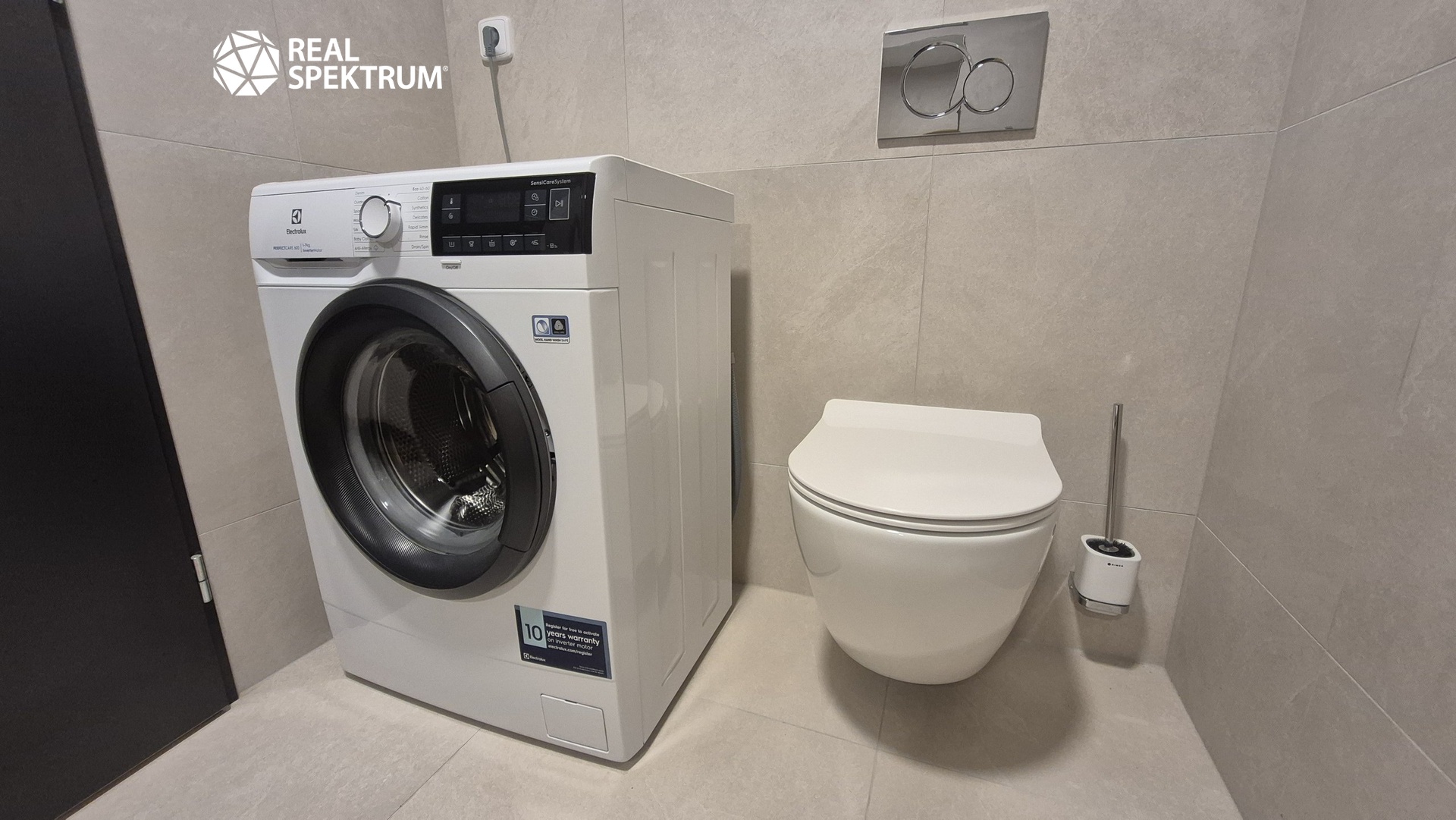 Apartmán se pronajímá částečně vybavený – k dispozici je nová kuchyňská linka s elegantní kombinací černé a dřeva, včetně spotřebičů (myčka, lednice, varná deska, mikrovlnka). Obytný prostor působí vzdušně díky vysokým oknům a světlým podlahám. Koupelna je moderní a prostorná – sprchový kout, umyvadlová skříňka, toaleta a pračka.