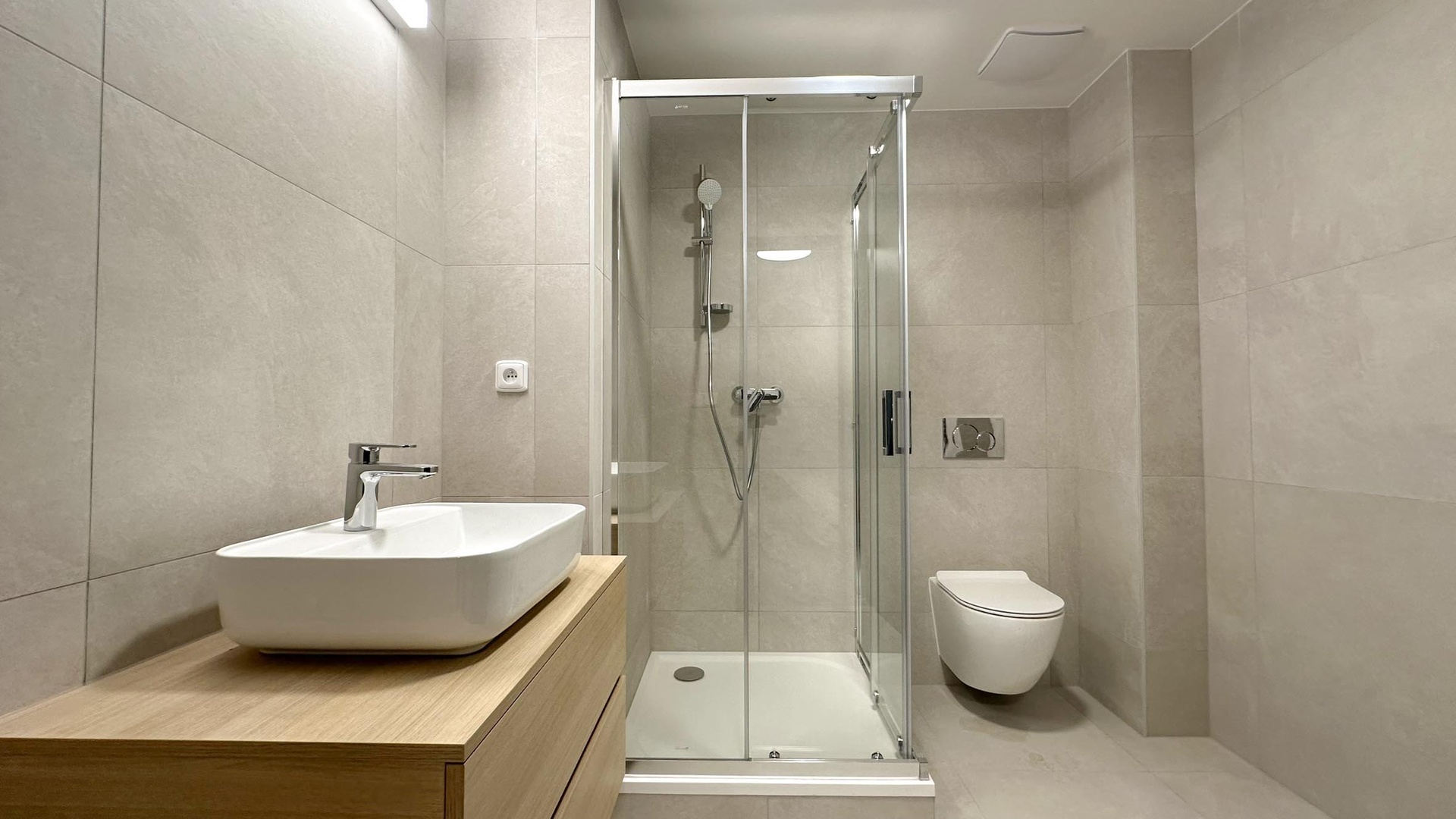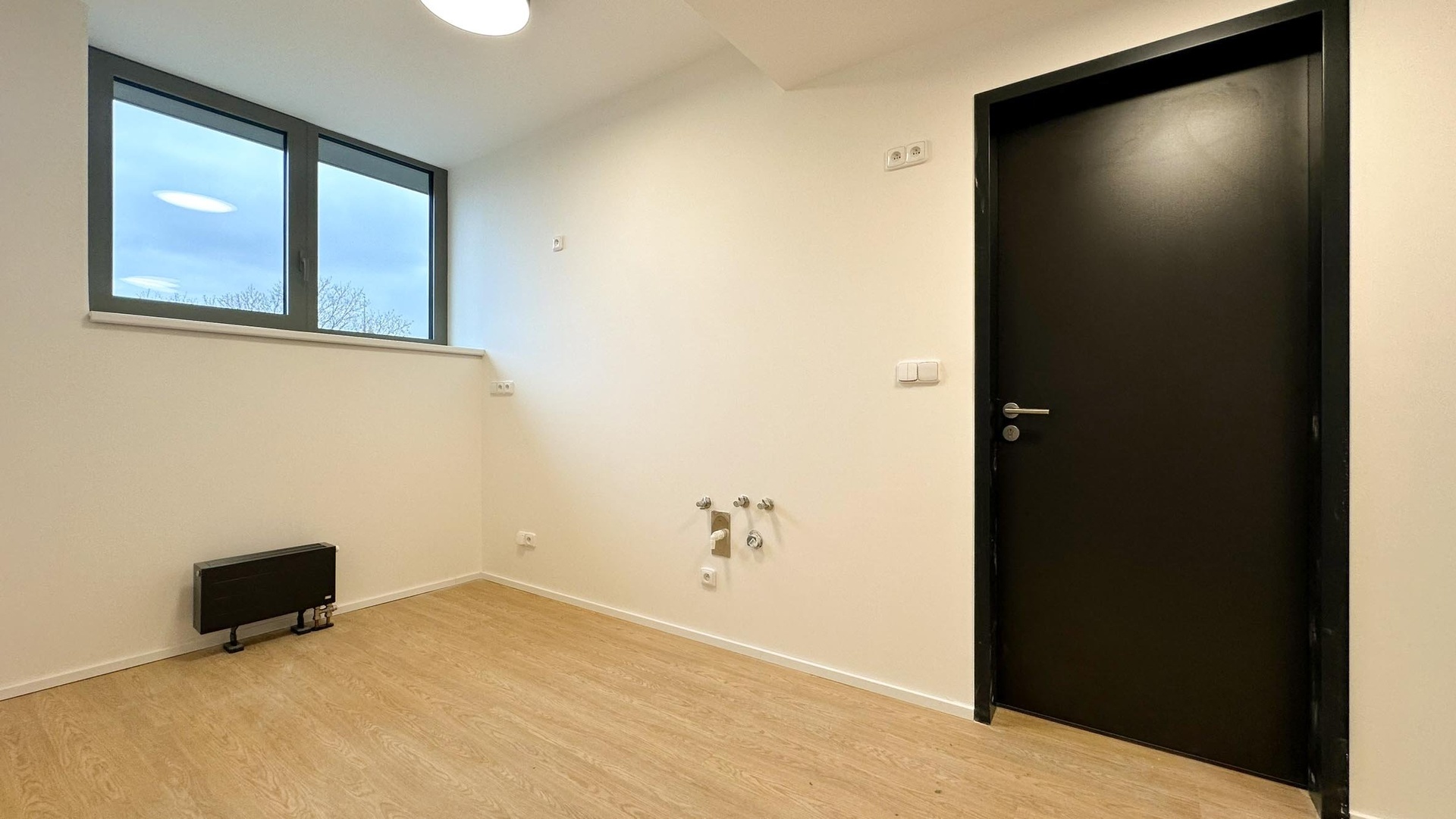 Apartmán se pronajímá částečně vybavený – k dispozici je nová kuchyňská linka s elegantní kombinací černé a dřeva, včetně spotřebičů (myčka, lednice, varná deska, trouba, mikrovlnka). K dispozici jsou zde nevybavené prostory, které můžete využít dle své fantazie a tvořivosti. Koupelna je moderní a prostorná – sprchový kout, umyvadlová skříňka, toaleta a pračka.