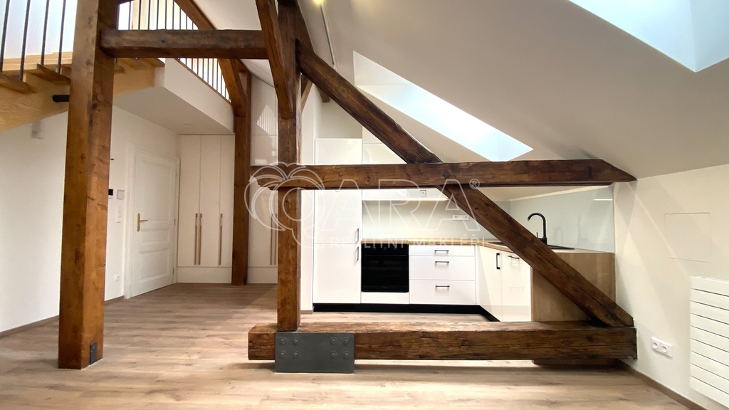 Byt vás nadchne svou vzdušností a důmyslně řešeným prostorem, který je ideální pro moderní životní styl. Vnitřní dispozice zahrnuje dvě příjemné obytné místnosti propojené schodištěm. Vybavení bytu zahrnuje klimatizaci a vlastní plynový kondenzační kotel, zajišťující nejen příjemnou teplotu během letních veder, ale také efektivní vytápění v zimních měsících. Součástí vybavení je také kuchyňská linka s moderními vestavěnými spotřebiči.