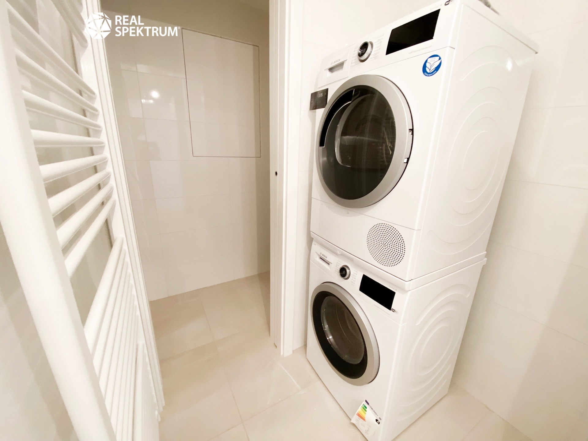 V koupelně 6,5 m² se nachází WC, sprchový kout, umyvadlo a starosti vám ubere i to, že zde najdete pračku a sušičku. Každý jistě ocení samostatnou šatnu 3 m². Vstupní hala neboli předsíň je o velikosti 5,7 m², pokoj 13,5 m² a obývací pokoj s kuch. koutem pak 27,5 m² - poslední dvě zmiňované místnosti jsou se vstupem na balkón.