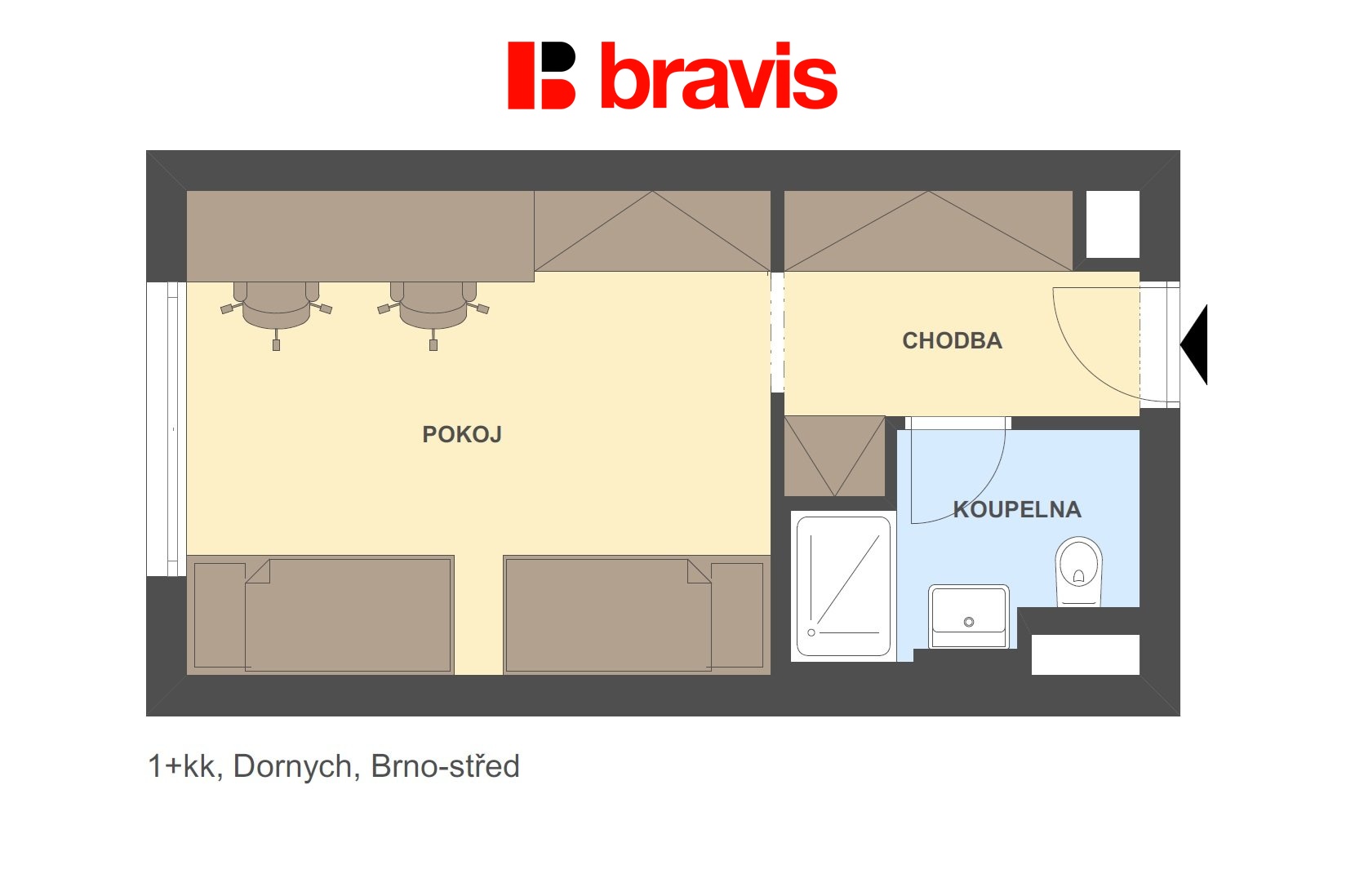 Moderní, bezpečné, metropolitní bydlení na dosah centra Brna. Tím vším a mnohem více je jednotka o velikosti 1+kk v rezidenčním domě na ulici Dornych v Brně.