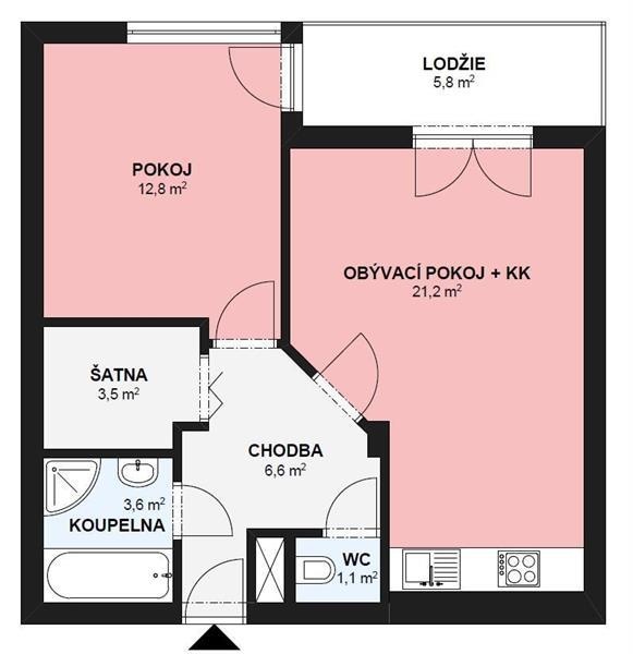 Dispozice bytu:2+kk