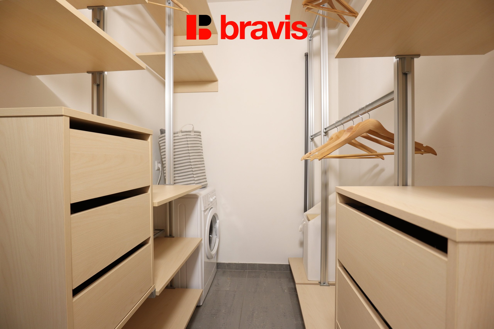 Koupelna nabízí vanu i sprchový kout, toaleta je samostatná. Velkým praktickým benefitem je prostorná šatna s pračkou.