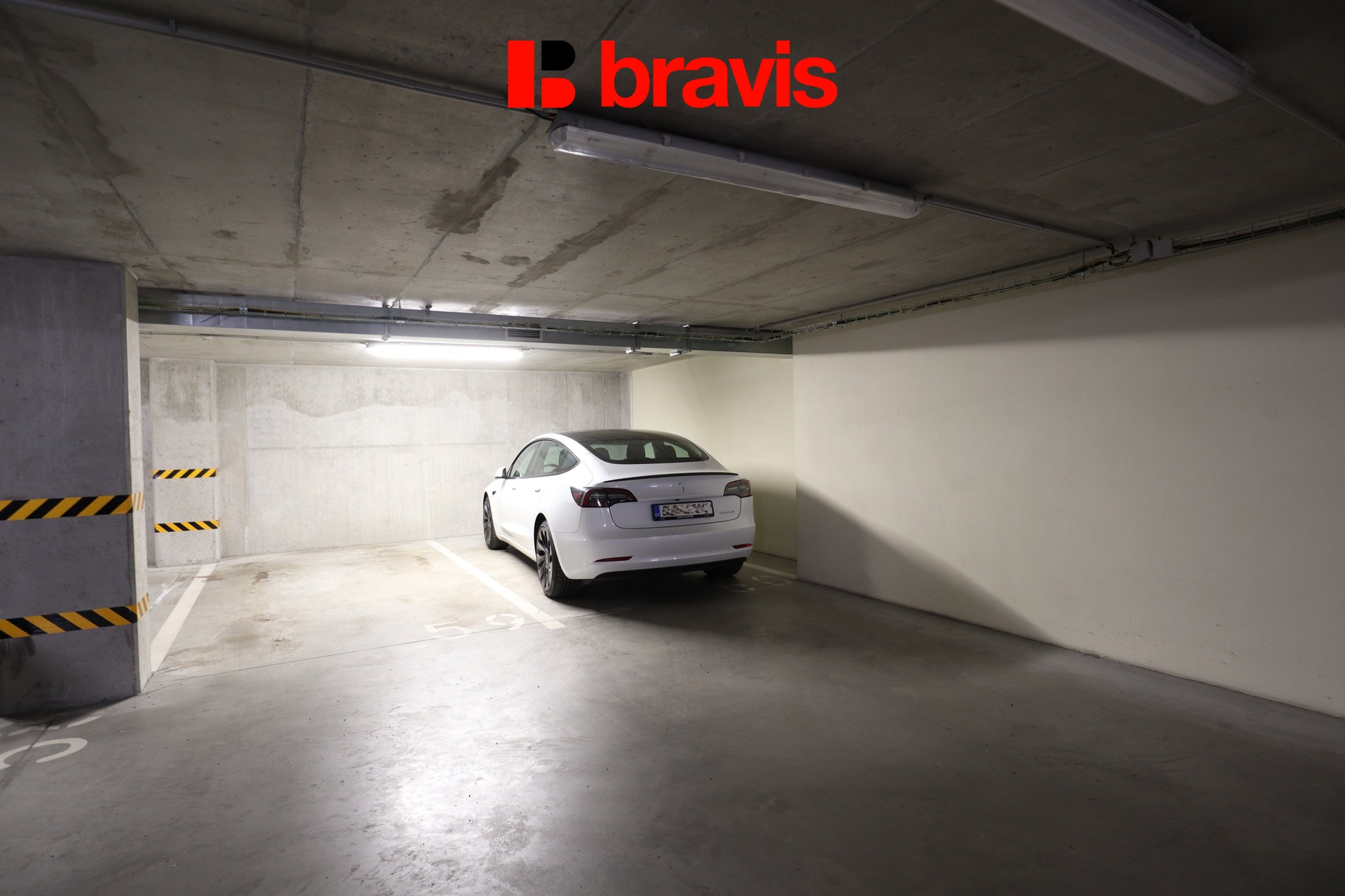 K bytu náleží parkovací stání v garáži přímo v domě. Možnost řešit zřízení dobíjení elektromobilu dle pravidel SVJ.
