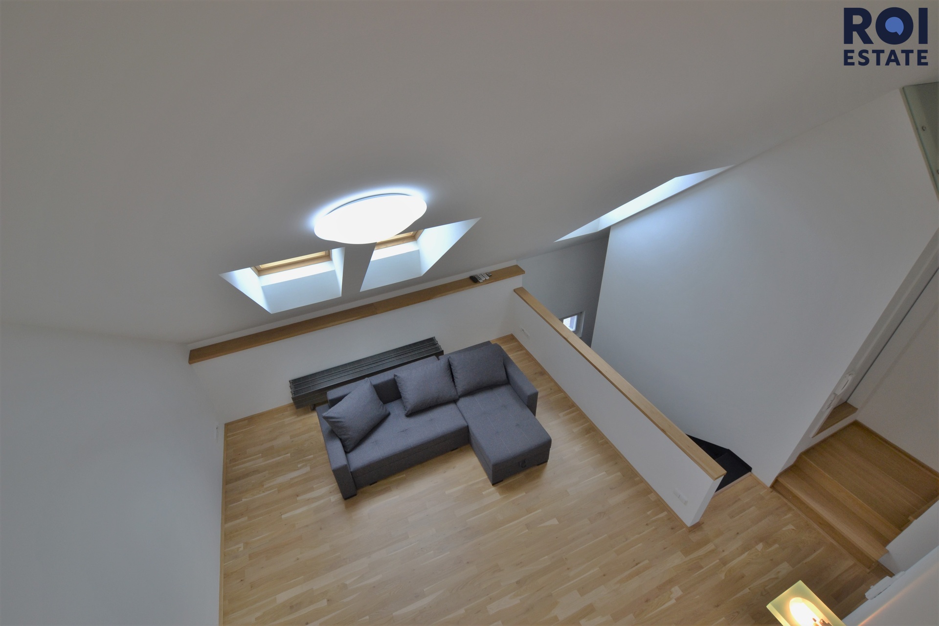 Spodní prostor, který tvoří 3 místnosti se sociálním zázemím a horní velkorysý mezonet 3+kk (dohromady užitná plocha 155 m2) lze využít jako ucelené firemní sídlo nebo je kreativně kombinovat jako kanceláře a firemní byt. Modernizace budovy kladla důraz na špičkovou kvalitu materiálů, tepelný komfort zajištěný klimatizací a maximální soukromí nájemců.