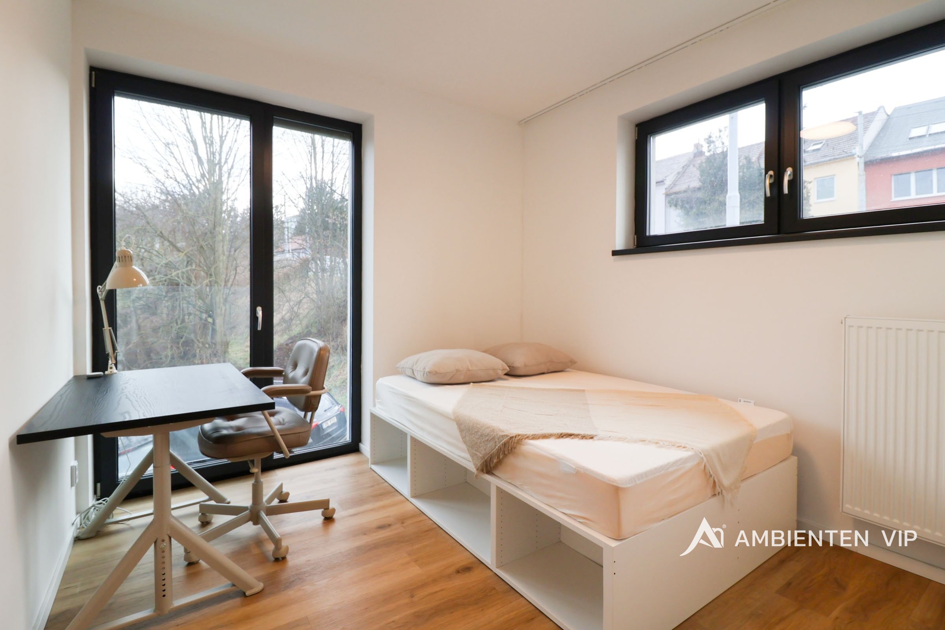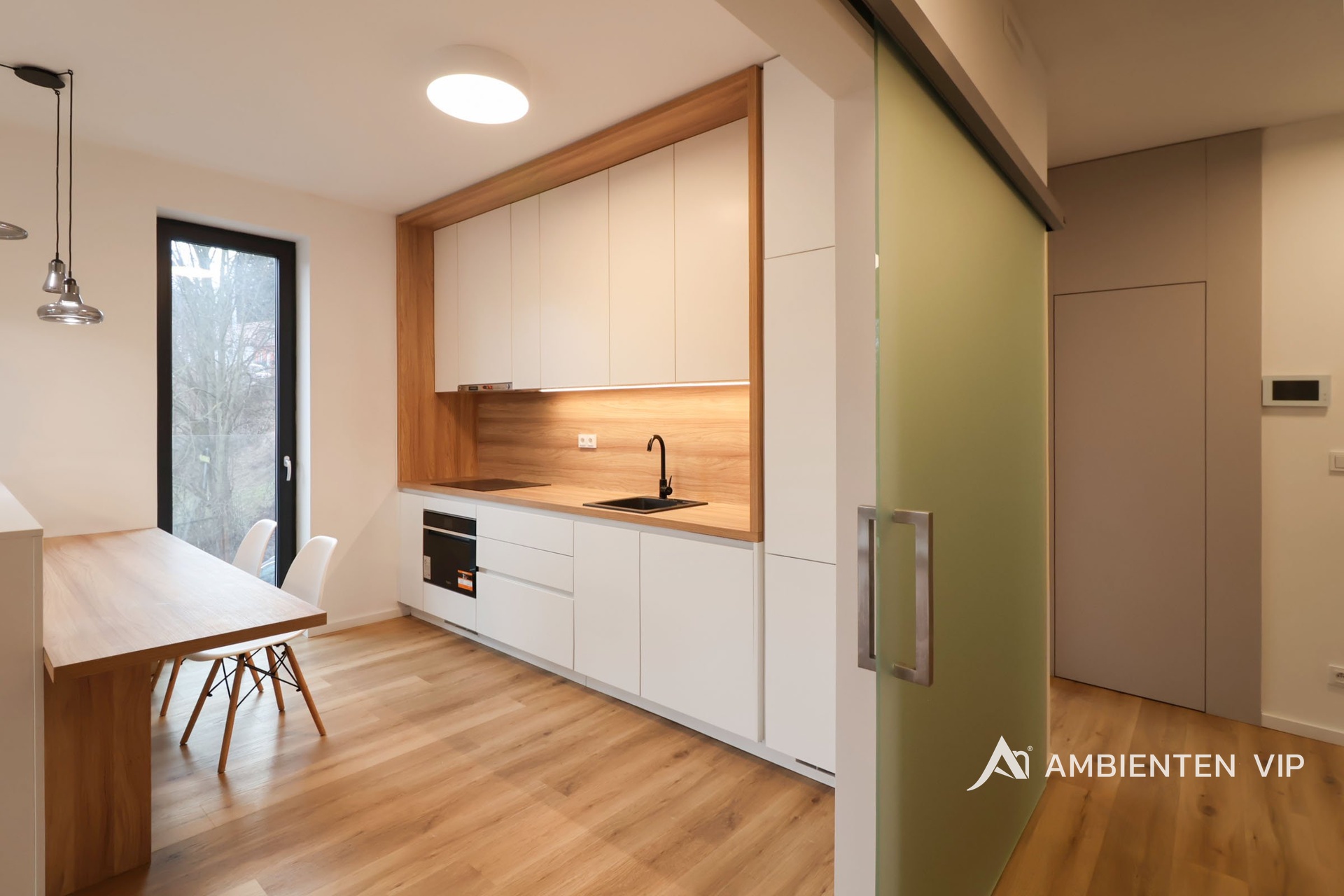 AMBIENTEN VIP nabízí krásný byt o dispozici 3+kk, který je vybaven v nadstandartním provedení s balkónem (6m2) s francouzskými okny a možností parkování na soukromém pozemku.