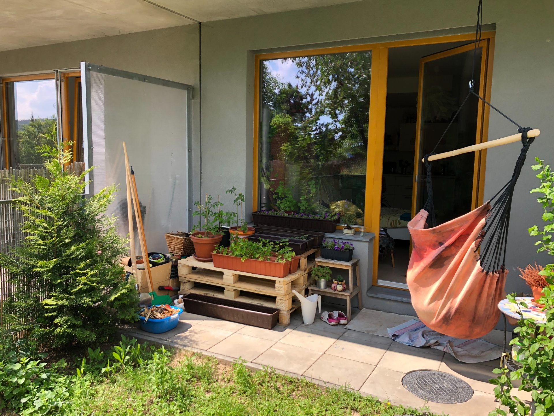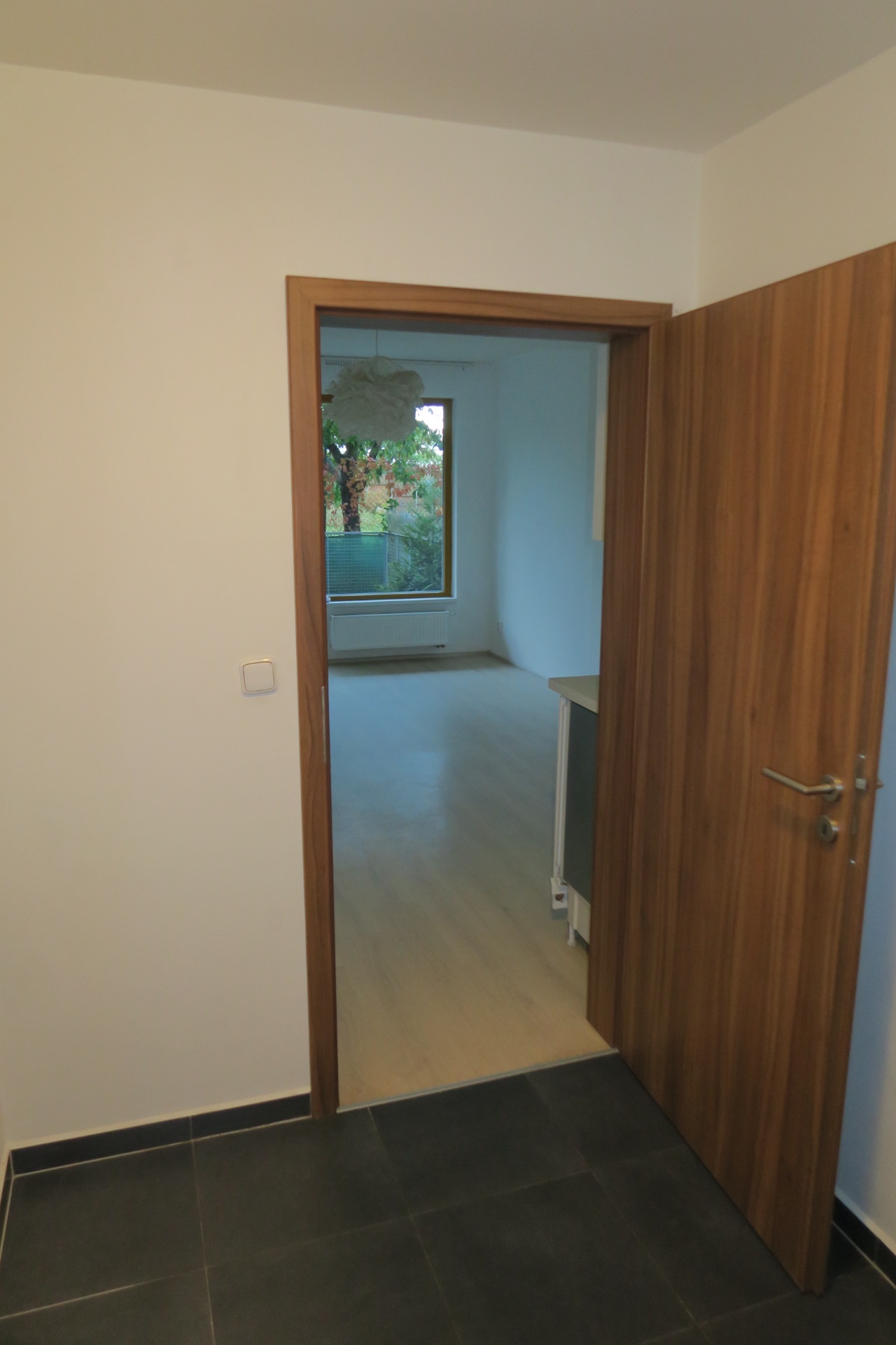 Pronájem nezařízeného bytu 1+kk se zahrádkou a garážovým stáním v novostavbě, Brno - Komín, Meandr