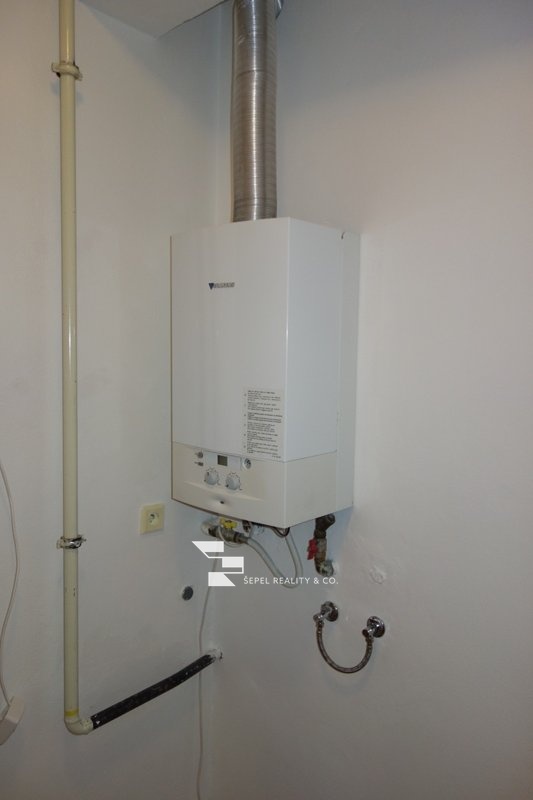 Byt má vlastní kotel na topení v bytě, teplá voda je dálkově .