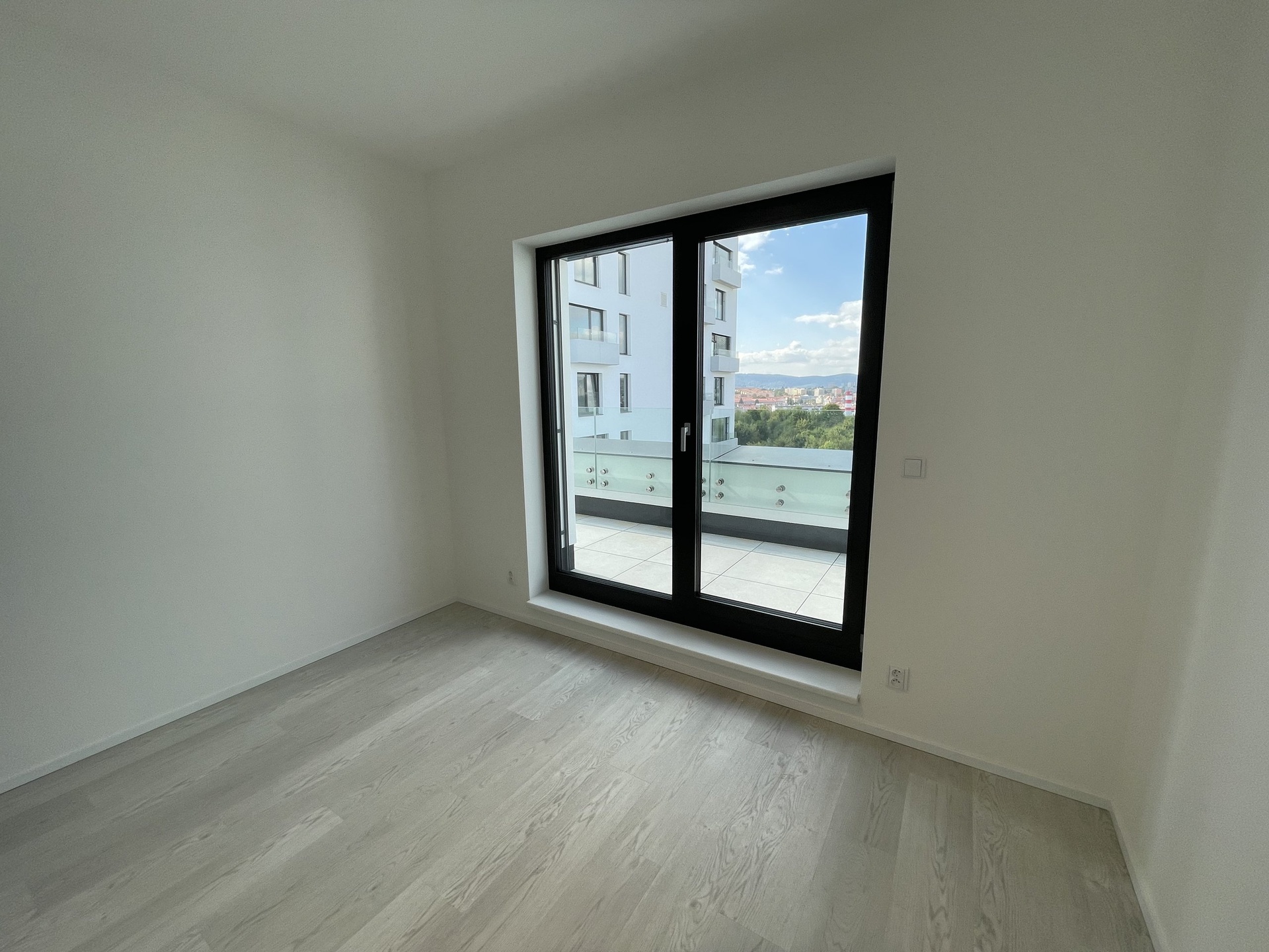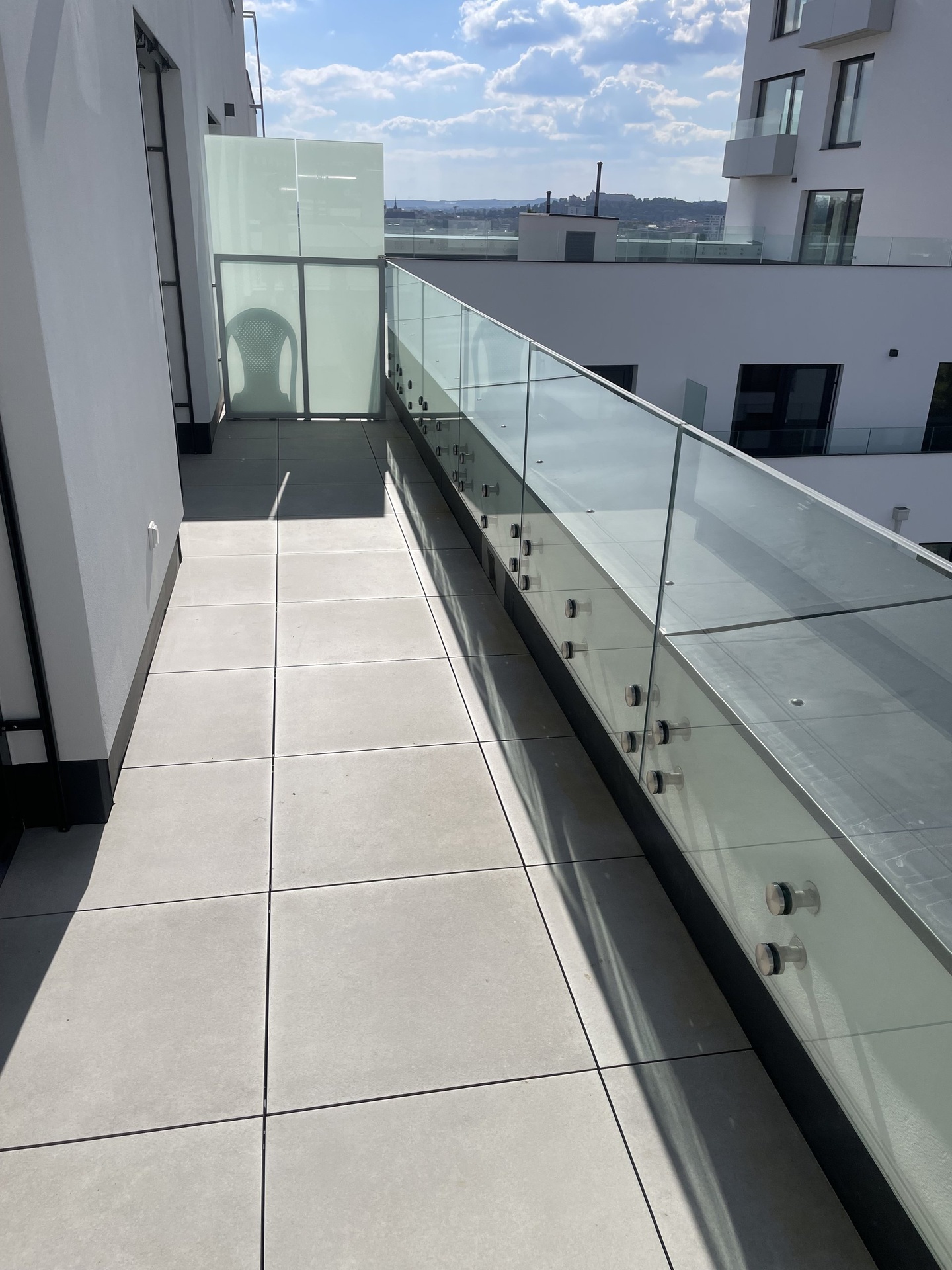 Kancelář je situována na západní stranu a je tedy velice světlá a příjemně prosluněná. K dispozici je klimatizace a předokenní žaluzie. Z obou pokojů lze vstoupit na prostornou terasu, která vybízí ke klidnému posezení a nabízí překrásný výhled do okolní zeleně a též na historické dominanty města.