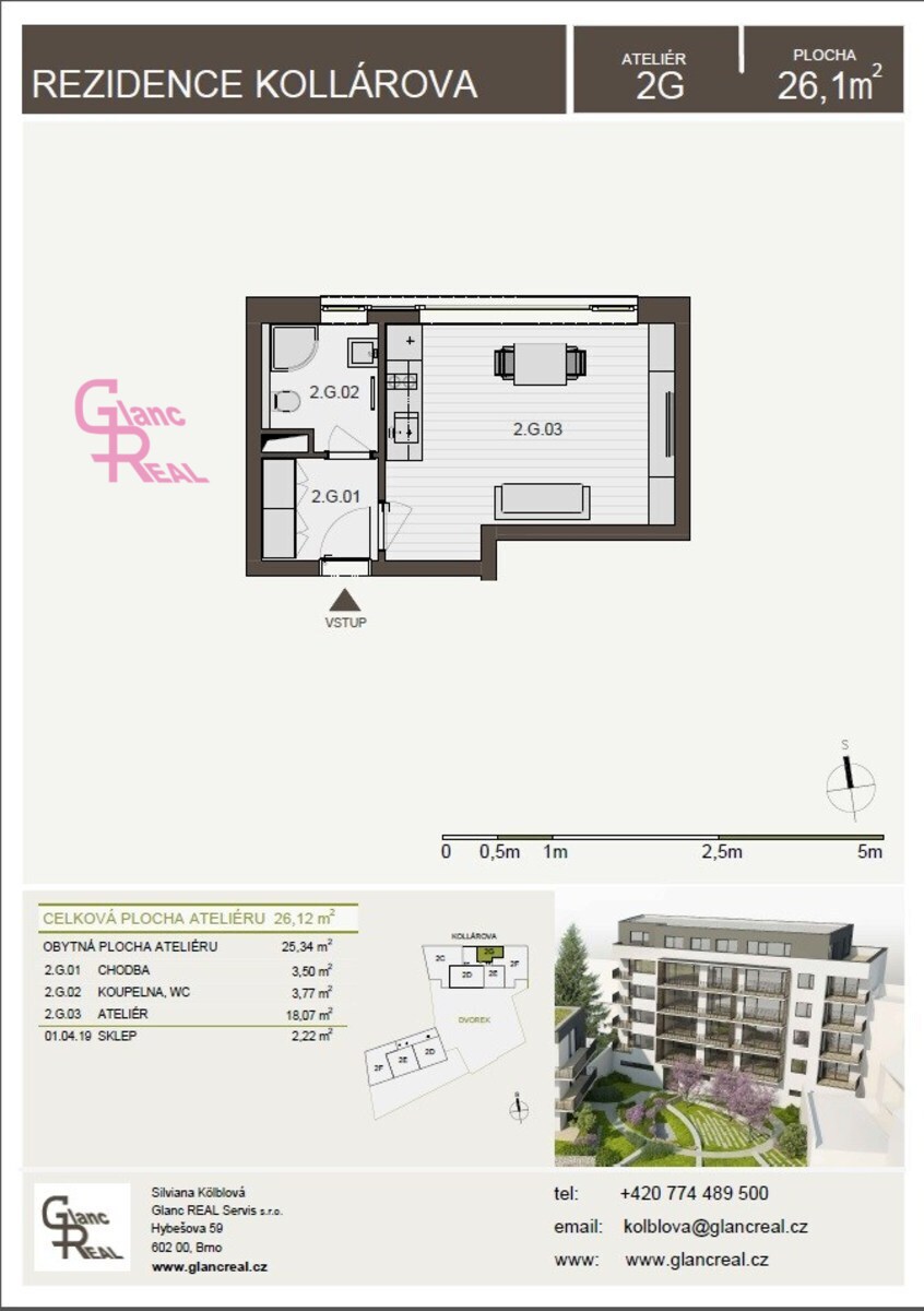 Výhradně nabízíme novostavbu bytové jednotky 1+kk v žádané lokalitě Brno - Královo Pole na ul. Kollárova. Jedná se o novostavbu v "Rezidenci Kollárova" s dispozicí 1+kk o celkové ploše 27 m2, nacházející se ve 2.n,.p./6.n.p. cihlového domu s výtahem.