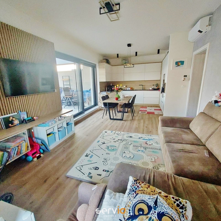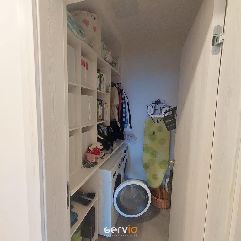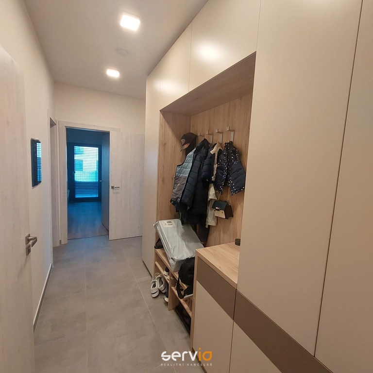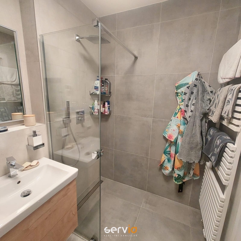 V celém bytě je podlahové topení a elektricky ovládané venkovní žaluzie s větrným čidlem (na aplikaci a na ovladač). Rok kolaudace 2022.