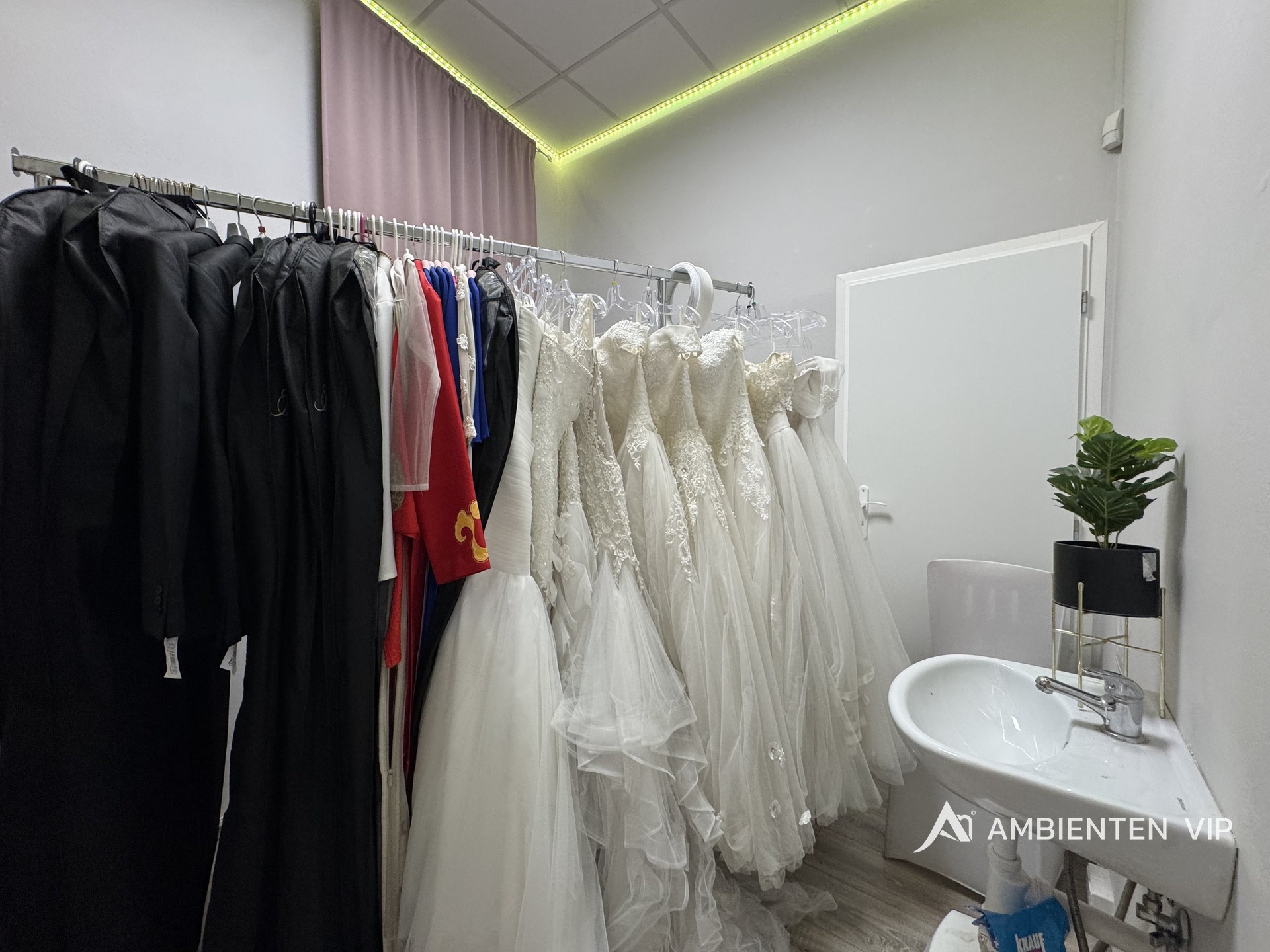 Dispozice zahrnuje velké otevřené prostory o velikosti 53,2 m2, 107 m2, dále toaletu, komoru a prádelnu, která může být využita i jako další WC. Prostory se pyšní vysokými stropy, výhledem do ulice Masarykova. Výlohy jsou vidět i ze samotné ulice. Obchodní prostor je v tuto chvíli využíván půjčovnou plesových a svatebních šatů.