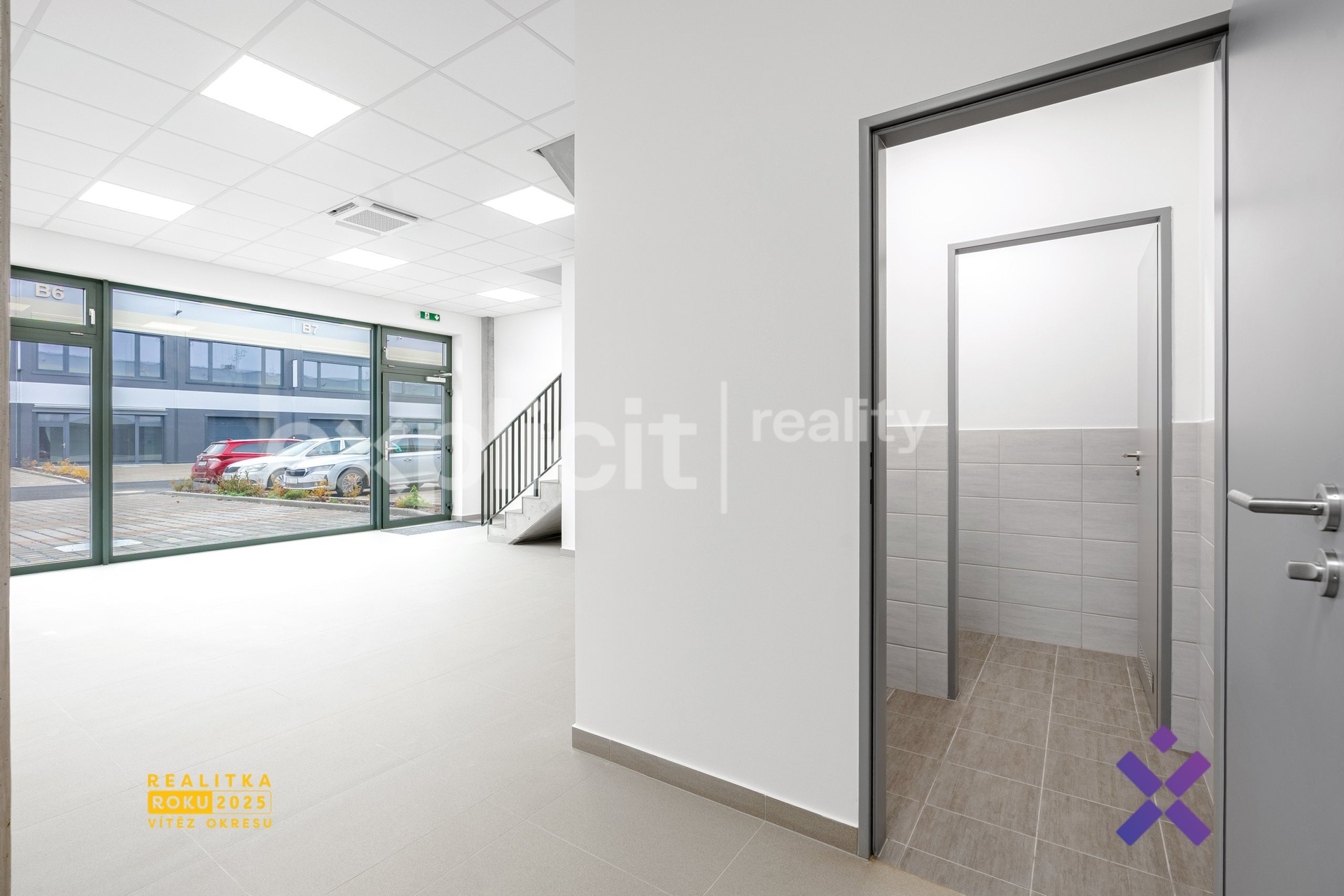 Součástí pronájmu je také venkovní plocha 158 m², vhodná pro parkování a manipulaci, včetně až 7 parkovacích míst.