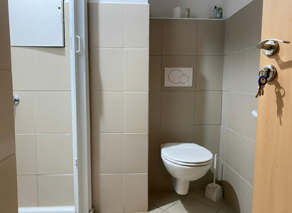 Hlavní obchodní plocha o velikosti 5,3m2, hliníkové výklady (výška cca 2,2 m) zahrnují praktické obslužné okénko do ulice, které umožňuje rychlý prodej bez nutnosti vstupu zákazníků, dveře jsou otevíratelné ven. Na podlaze je položena dlažba, podlahové topení, klimatizace, svítidla, zásuvky. Druhá samostatná místnost o velikosti 5,4 m, která může sloužit jako zázemí, WC, umyvadlo a malý sklad.
