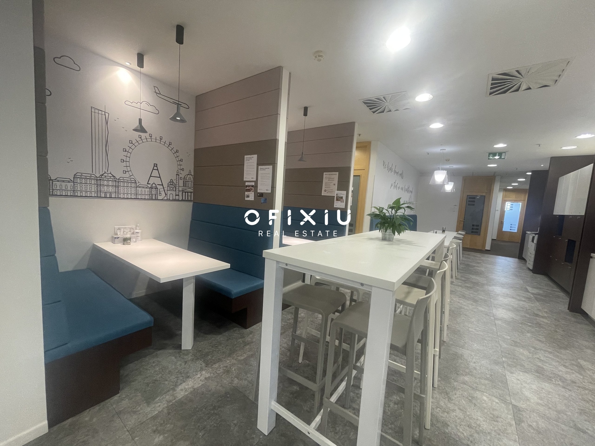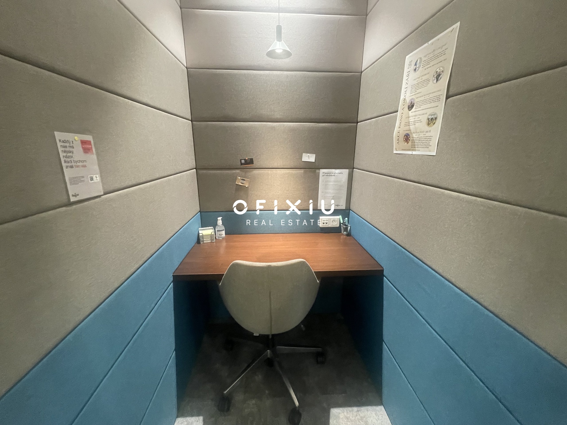 Kanceláře se nachází v 5. patře a dle klientových preferencí je možno vybrat z několika variant samostatných místností, které jsou pak vybaveny dle jeho individuálních potřeb. Zároveň jsou k dispozici sdílené prostory nabízející možnosti navazování nových kontaktů, práce a schůzek v zasedacích místnostech, a také využití služeb jako kávovar či kopírka.