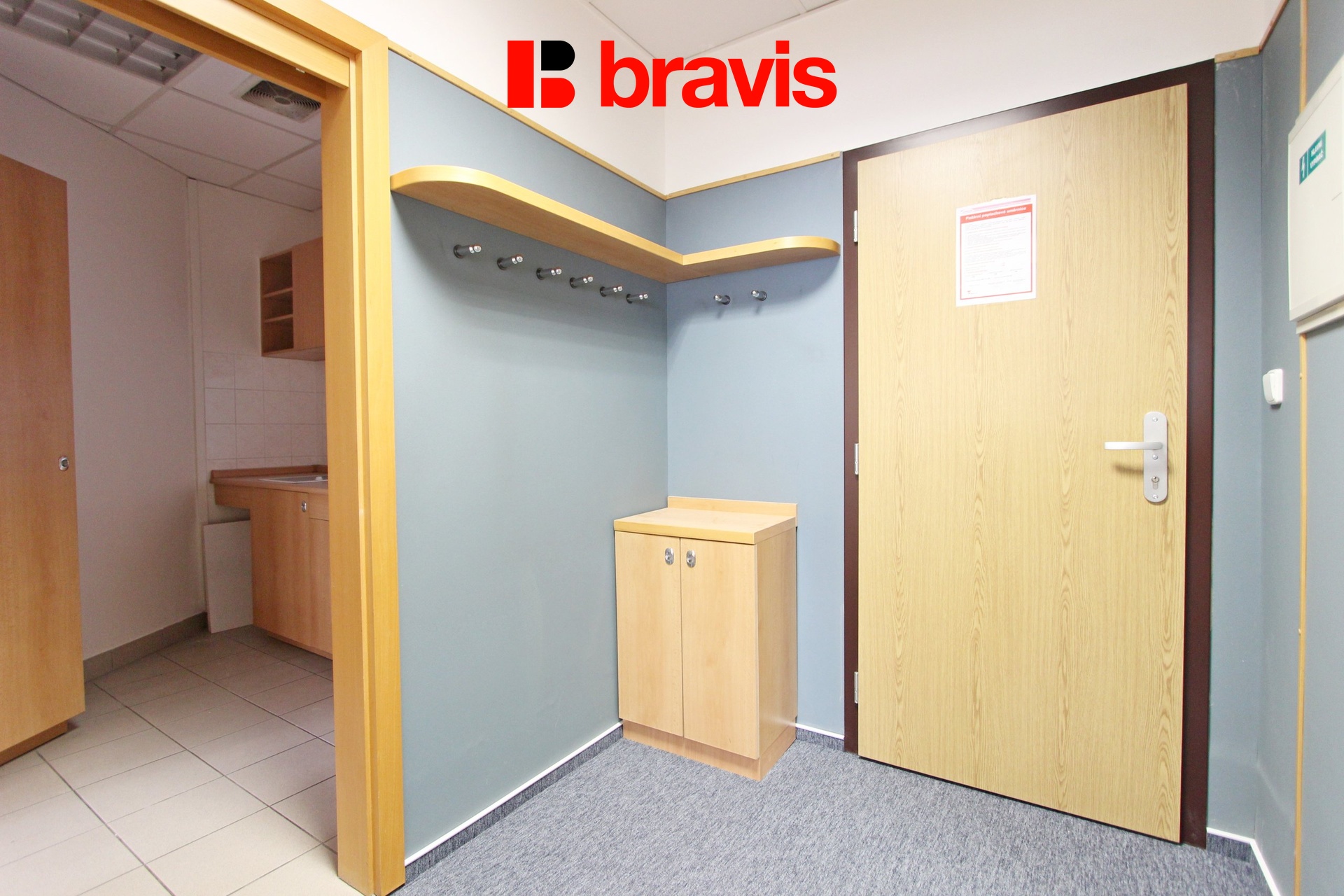 Dispozice 2+1 nabízí neprůchozí místnosti, což poskytuje dostatek soukromí a prostoru pro jednotlivé pracovní týmy nebo oddělení. V kanceláři se také nachází koupelna se sprchovým koutem a praktická kuchyňka s lednicí a varnou deskou, což přidává na komfortu a funkčnosti prostoru.