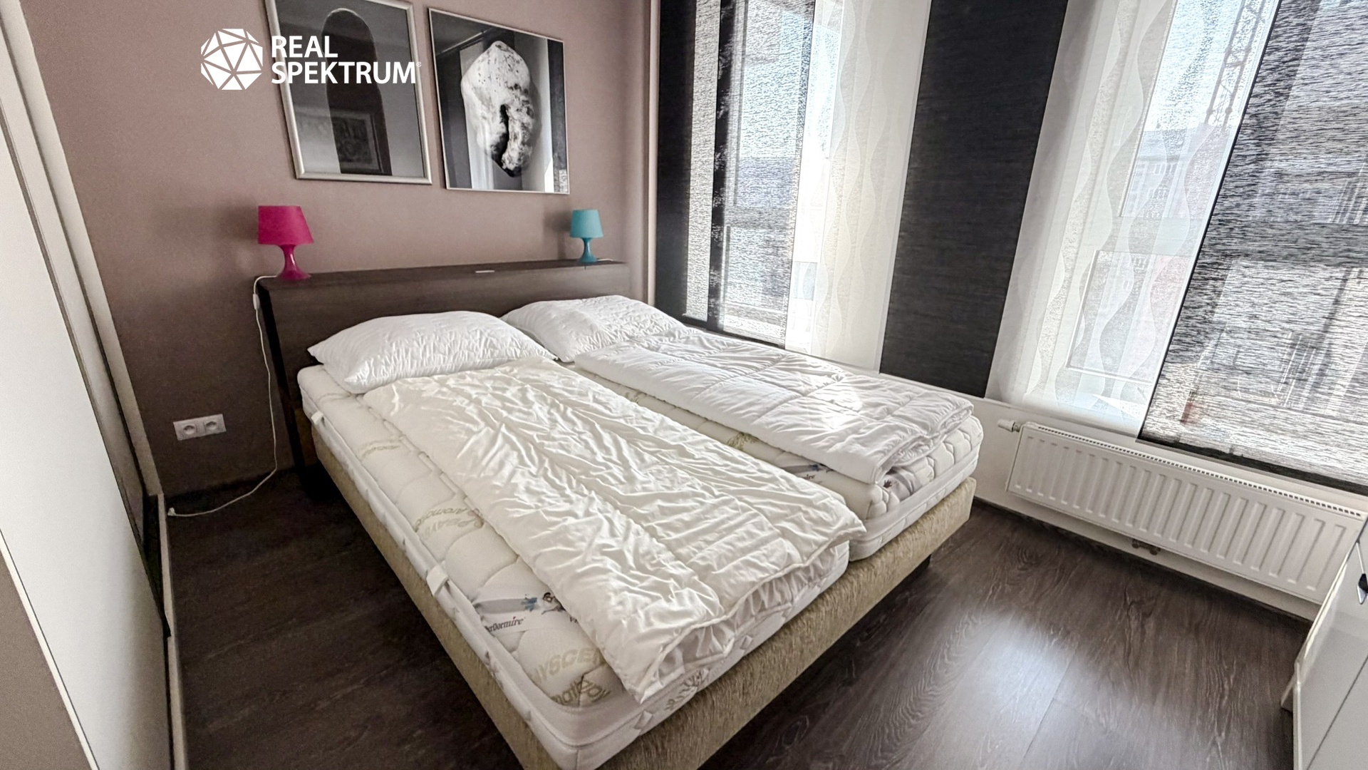 Samostatná ložnice poskytuje klidné zázemí a dostatek úložného prostoru. Balkon navazující na obytný prostor je ideálním místem pro ranní kávu nebo večerní odpočinek.