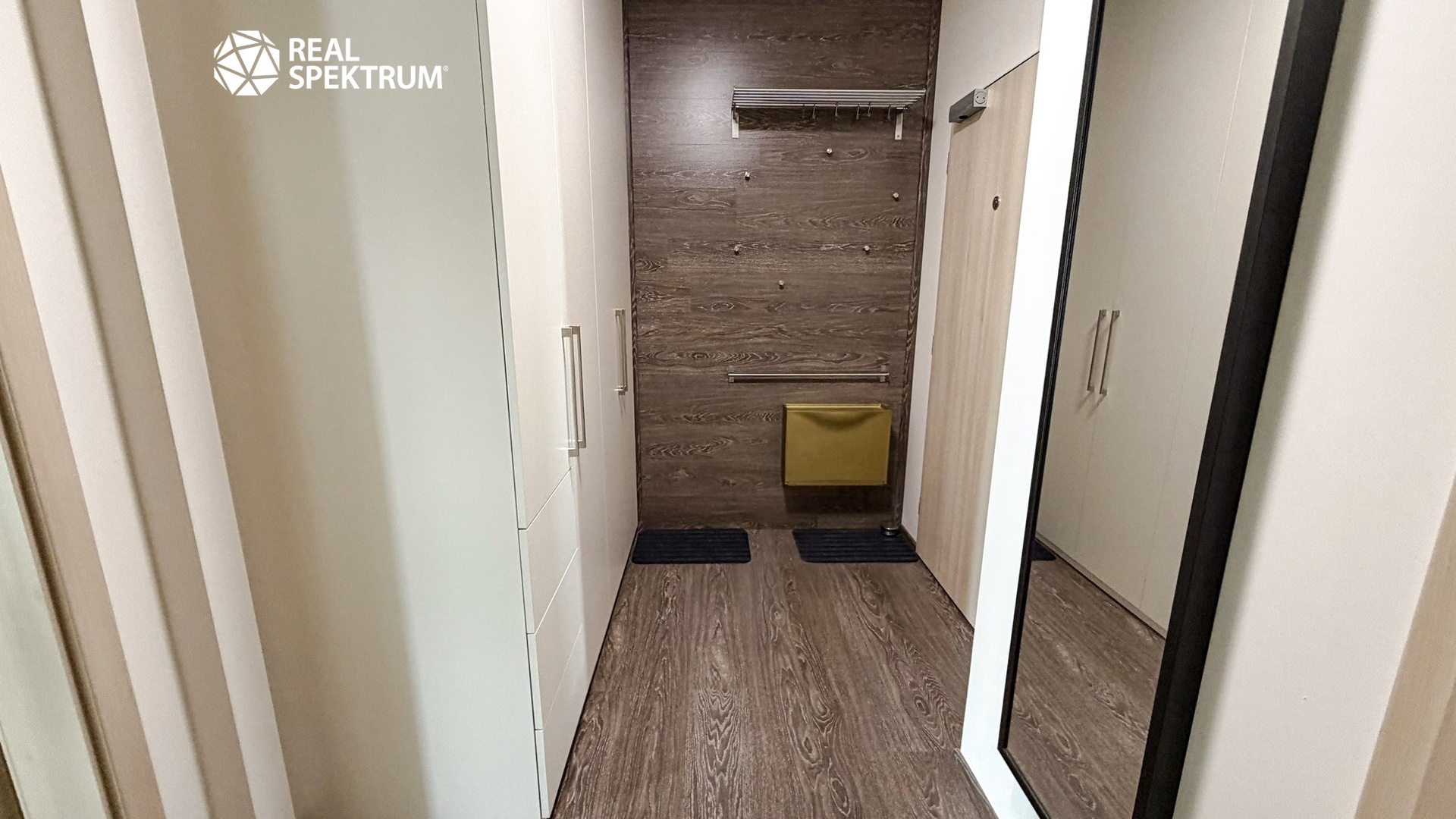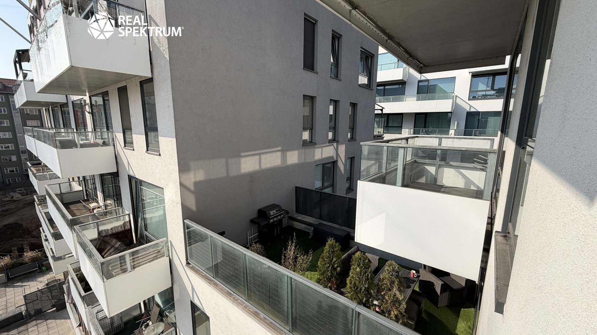 Byt o podlahové ploše 43,2 m² s balkonem se nachází v 7. patře moderního domu s výtahem. Velká okna přivádějí do interiéru dostatek denního světla a celý prostor tak působí velmi vzdušně a příjemně.
