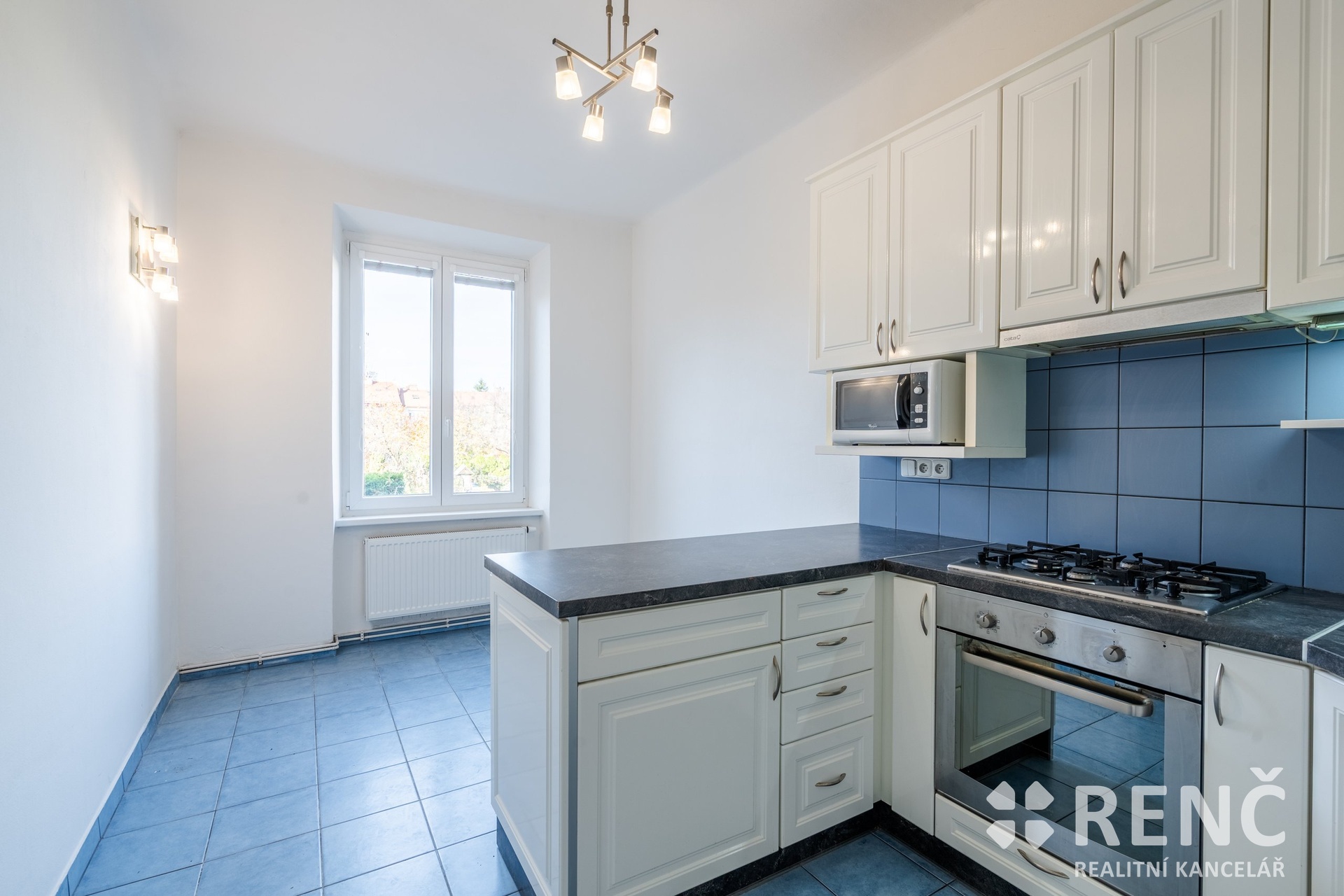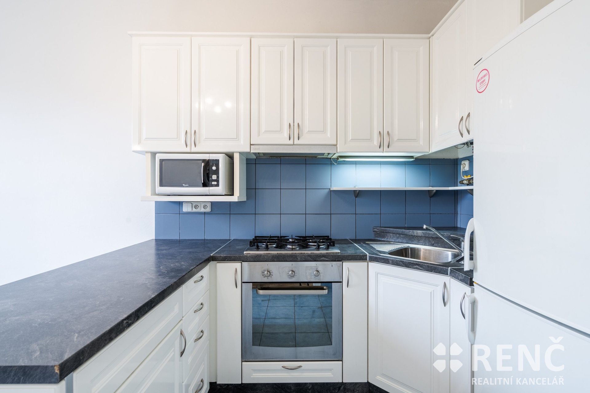 Součástí bytu je kuchyňská linka včetně digestoře, kombinovaného sporáku, lednice, varné konvice a mikrovlnné trouby.