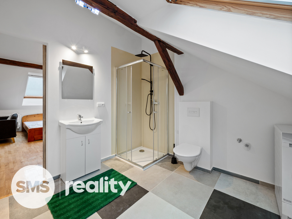 Nabízíme k dlouhodobému pronájmu světlý a prostorný byt 1+kk o výměře 62 m², který se nachází v podkroví nově zrekonstruovaného řadového domu na ulici Čejkova v Brně – Židenicích.