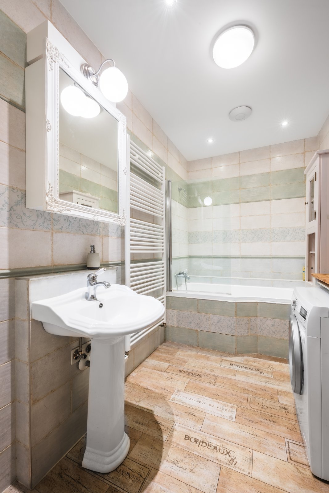 O komfort v chladném období se stará plynový kotel s radiátory. Velkou přidanou hodnotu přináší elegantní krbová kamna, která prohřejí celý byt a dokreslí atmosféru v zimních měsících. Díky tomu lze i snížit náklady na bydlení, které v komfortním režimu činí zhruba 3000 Kč/měs za plyn (topení + TUV) a 1500 Kč/měs za elektřinu. Za vodu platí průměrná čtyřčlenná rodina okolo 700 Kč/měs.
