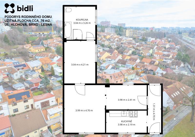 Nabízím k prodeji řadový rodinný dům v městské části Brno-Lesná, v oblíbené lokalitě tzv. Divišovy čtvrti, na ulici Hlohová. Dům má zastavěnou plochu 88 m2, současnou užitnou plochu cca 76 m2; a náleží k němu pozemek o celkové výměře 152 m2. Uliční šíře domu je cca 10 m, což je velmi slušný základ pro praktické dispoziční řešení i případné úpravy. Nemovitost je napojena na všechny hlavní inženýrské sítě - elektřinu, plyn, vodu i kanalizaci.