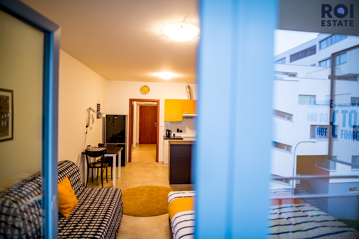 Nabízíme k podnájmu světlý a plně zařízený byt o dispozici 1+kk s balkonem, který se nachází ve 3. nadzemním podlaží domu na ulici Vídeňská. Lokalita nabízí pohodlné městské bydlení s rychlou dostupností do centra.
