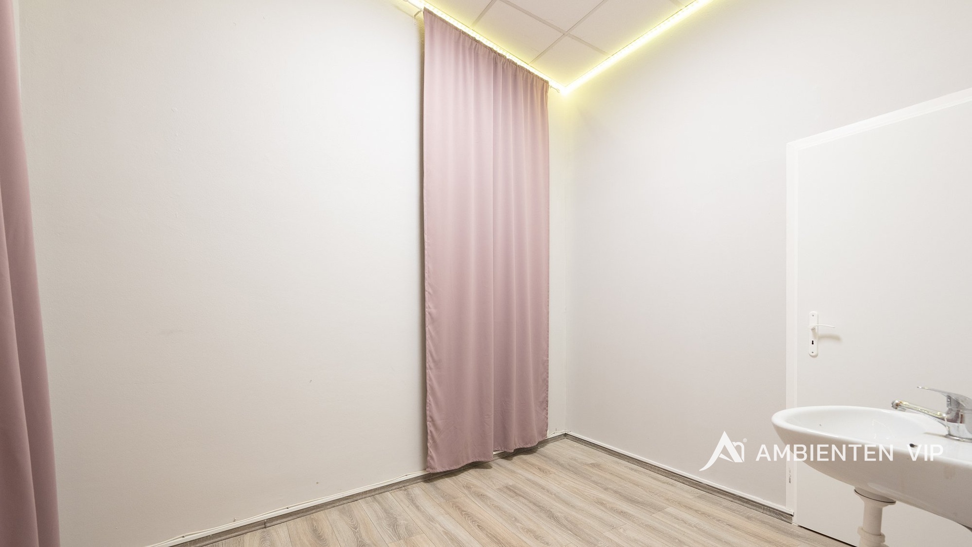 2. Nebytový prostor. Druhá část nebytové jednotky, dříve využívaná jako svatební salón, je přístupná ze společných prostor domu a nachází se ve 2. NP s výtahem. Celková výměra činí 214,3 m² + balkon 1,8 m². Dispozice zahrnuje: dva velké otevřené prostory, kancelář s vlastním sociálním zázemím a balkonem, druhou samostatnou kancelář, několik oddělených toalet a komoru. Prostory se vyznačují vysokými stropy, reprezentativním charakterem a variabilním využitím, vhodným pro kanceláře, showroom, služby či sídlo společnosti.