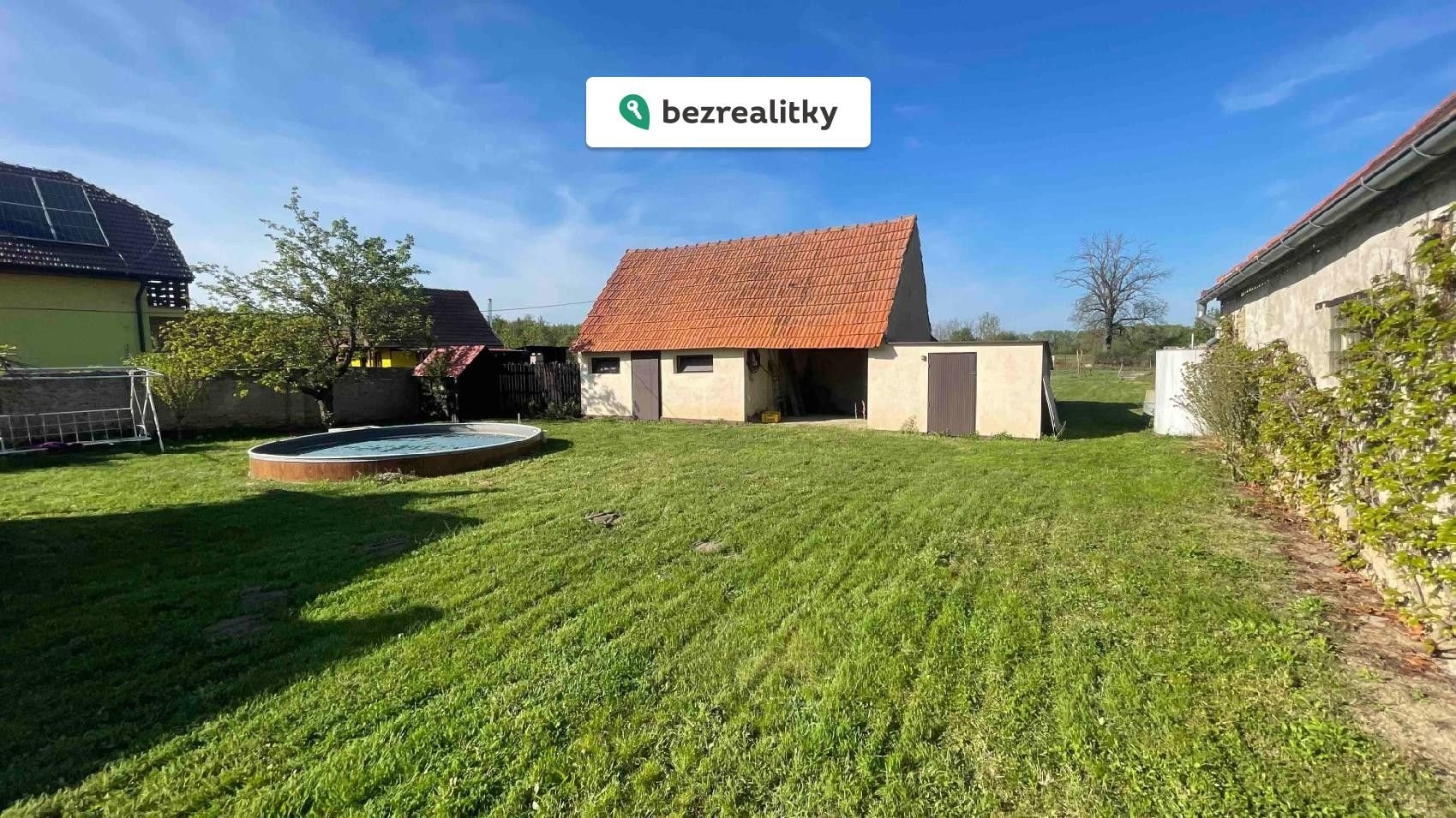 Prodej prostorného, přízemního domu s dispozicí 3+1, koupelna s vanou, k domu náleží samostatná garsoniéra 1+kk s vlastním vchodem, kuchyňským koutem a sociálním vybavením, sprchovací kout,WC možnost propojit s domem,v domě dobře větratelná spíž 12 m2. Dům má plastová okna (žaluzie, sítě proti hmyzu). Je vytápěn plynovým kotlem, možnost topení i tuhými palivy. V zahradě se nachází zastřešené posezení, jezírko s rybami a bazén. Ve střední části pozemku stojí hospodářské stavení (dílna 25m2, přístřešek pro auto 35m2 a sklep 20m2). Za touto stavbou se rozkládá zahrada s možností další výstavby RD je tedy nastavitelný.