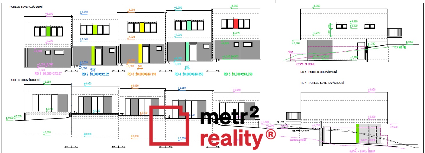Hledáte moderní, technicky vyspělé, a především nízkonákladové bydlení v klidném prostředí blízko přírodě s vynikající dostupností do okolních měst? Pak pro vás máme novinku v Brodku u Prostějova. Objekt navrženého řadového domu „Novostavba 5 RD“ je součástí nově navržené řadové zástavby, která je řešena v návaznosti na nedávno budovanou lokalitu rodinných domů v jižní části městyse. Navrženy jsou řadové domy, dvoupodlažní, nepodsklepené. Jsou osazeny do svahu. Vstup je do 1. NP z přilehlé komunikace, vstup na terasu a do zahrady je z 2. NP balkonovými dveřmi. Objekty jsou v uliční čáře uskákány – plasticky členěny. Příchod a příjezd k řešeným RD je ze severozápadního směru z nově zpevněné komunikace, objekty rodinných domů jsou z této strany v rámci 2. NP předsazeny a venkovní plocha v úrovni 1. NP před objektem bude vydlážděná betonovou zámkovou dlažbou a bude sloužit pro parkování vozidel. Vydláždění bude provedeno investorem a bude navazovat na zpevněnou cestu. RD 4 je koncipován jako 3+kk. Vstup do objektu RD 4 je ze závětří krytého předsazeného 2. NP do chodby se zákoutím pro technické systémy domu a se schodištěm do 2. NP. Dále v rámci 1. NP ještě WC s umyvadlem. V druhém nadzemním podlaží navazuje schodiště na chodbu, ze které je vstup do ložnice, pokoje, do koupelny s vanou a s WC a do obytné místnosti – obývacího pokoje s kuchyňským koutem. Z tohoto prostoru je vstup na terasu. Část 2. NP, směrem do zahrady, je založena na zemině přímo v rámci 2. NP. Terasa je řešena ze zámkové dlažby do štěrkových vrstev. Základové konstrukce jsou řešeny jako základové desky tl. 400 mm z železobetonu s výztuží. Obvodové nosné zdivo, vnitřní nosné a nenosné zdivo je navrženo z Porothermu, z vnější strany zatepleného zateplovacím systémem s omítkou v barvě s šedými segmenty a barevnými pruhy dle pohledů. Stropní konstrukce železobetonové monolitické. Zastřešení stavby plochou střechou. Nášlapné vrstvy podlah uvnitř objektu z keramické dlažby a z vinylu. Výplně otvorů jsou řešeny plastové, zasklení trojsklo, vnitřní dveře v dřevěných obložkových zárubních. Jsou navrženy vnější žaluzie do podomítkových kastlů. VCM omítky, stropy z SDK desek pro možnost rozvodu rekuperace. Oplocení objektu pletivem na sloupky. Zastavěná plocha RD 4 82,40 m2, užitná plocha domu 87,45 m2, obytná plocha 51,20 m2, zpevněná plocha (vstup + vjezd i pod 2. NP, terasa za objektem) 51,10 m2. Celková půdorysná velikost domu RD 4 je 12,75 x 6,46 m. Vytápění domu bude řešeno podlahovým vytápěním rohožemi, v soc. zázemí ještě doplněno o topné žebříky. Zdrojem teplé vody pro vytápění a TUV je navrženo tepelné čerpadlo vzduch/voda umístěné v 1. NP, doplněné zásobníkem na 125 l. Venkovní jednotka bude umístěna na severu strany v zastíněném prostoru pod 2. NP. Jako zdroj budou na střeše nainstalovány fotovoltaické panely. Větrání řešeno decentrálními jednotkami s rekuperací. Osvětlení LED zdroji. Standard domu je nastaven formou finančních budgetů. Nesmírnou přidanou hodnotou této nabídky je aktivní spolupráce s provádějící stavební firmou, pro kterou není problém cokoliv, je-li to v souladu s projektovou dokumentací, stavebním povolením a nebrání kolaudaci domu. PENB třídy A. Městys Brodek u Prostějova nabízí vše potřebné pro rodinný život. Je zde základní škola, mateřská školka, obchody, restaurace, lékař, za pár minut se dostanete na dálnici a pak lehce do Prostějova, Olomouce nebo do Brna. Bližší informace o projektu, podmínek rezervace, systému financování apod. vám poskytne RK.