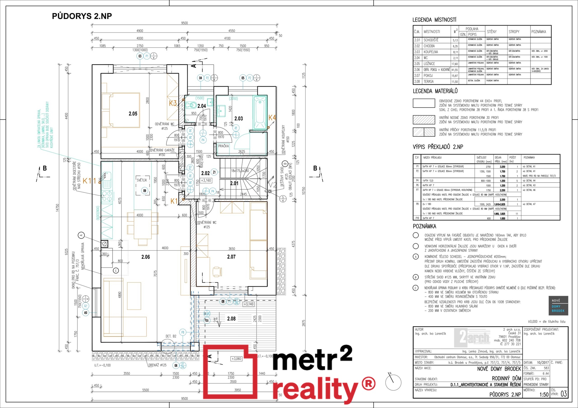 Hledáte moderní, elegantní a technicky vyspělé bydlení v klidném prostředí blízko přírodě s vynikající dostupností do okolních měst? Pak pro vás máme nabídku novostavby koncového řadového domu v Brodku u Prostějova. Dům je výborně architektonicky zpracován. Standard domu je nastaven formou finančních budgetů, což skýtá kupujícím téměř volný výběr povrchů a zařizovacích předmětů. Dům si ušijete tzv. na míru. Nesmírnou přidanou hodnotou této nabídky je aktivní spolupráce s provádějící stavební firmou, pro kterou není problém cokoliv, je-li to v souladu s projektovou dokumentací, stavebním povolením a nebrání kolaudaci domu. Můžete mít klimatizaci, předokenní rolety, fotovoltaiku, tepelné čerpadlo či dobíjecí stanici pro elektro automobil. Dům je realizován ve velmi vysoké kvalitě, má moderní koncepci a zaručuje nízké provozní náklady díky své nízké energetické náročnosti, kvalitní tepelné izolaci a modernímu řešení podlahového vytápění technologií heatflow. Změna topného systému je samozřejmě možná. Na přání lze dokončit dům ve variantě s chytrou domácností "LOXONE". Dům označený jako 3RDB je nepodsklepený, s celkovou užitnou plochou přes 155 m2, koncipován jako 4+kk s koupelnou, dvěma samostatnými toaletami s umyvadlem a s velkou garáží. Celková výměra pozemku 473 m2. Přízemí domu sestává ze zádveří, chodby, pracovny, samostatného WC s umyvadlem, komory pod schody a velké garáže. Schodištěm se dostanete do patra, kde najdete velký obývací pokoj s kuchyňským koutem, dvě samostatné ložnice, koupelnu se sprchovým koutem, vanou a přípravou pro pračku a samostatné WC s umyvadlem. Z obývacího pokoje a jedné ložnice vstoupíte na terasu a dále do zahrady s orientací na JZ, která skýtá příjemný výhled do zeleně a naprosté soukromí. Nadstandardní plocha pro parkování před RD uspokojí zájemce s více vozy, případně ty, kteří v přízemí domu zřídí kancelář a uvítají parking pro své klienty. Dům je ve fázi těsně před natažením finálních omítek v interiéru a položení vybraných podlahovin, obkladů a osazení interiérových dveří. Toto bude provedeno po výběru zájemce o koupi tohoto domu. Vybudování základové desky v atypickém terénu/skále bylo velmi náročné, domu však přinese výjimečné uspořádání, krásný výhled a soukromí. Jako zdivo pro tento projekt byla zvolena broušená akustická cihla Porotherm AKU Profi, která díky maximální akustické izolaci zaručuje ideální zvukovou pohodu v interiéru. Cihly Porotherm AKU jsou vysoce pevné, zdravotně nezávadné, ekologické a výborně akumulují teplo. Standard domu nabízí přípravu pro krb či krbová kamna. Městys Brodek u Prostějova nabízí vše potřebné pro rodinný život. Je zde základní škola, mateřská školka, obchody, restaurace, lékař, za pár minut se dostanete na dálnici a pak lehce do Prostějova, Olomouce nebo do Brna. Energetická třída B. Pro podrobnější informace o nemovitosti a způsobu financování kontaktujte makléře RK.
