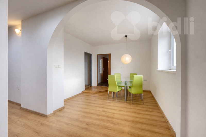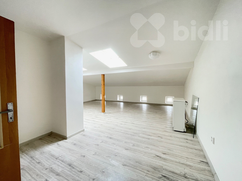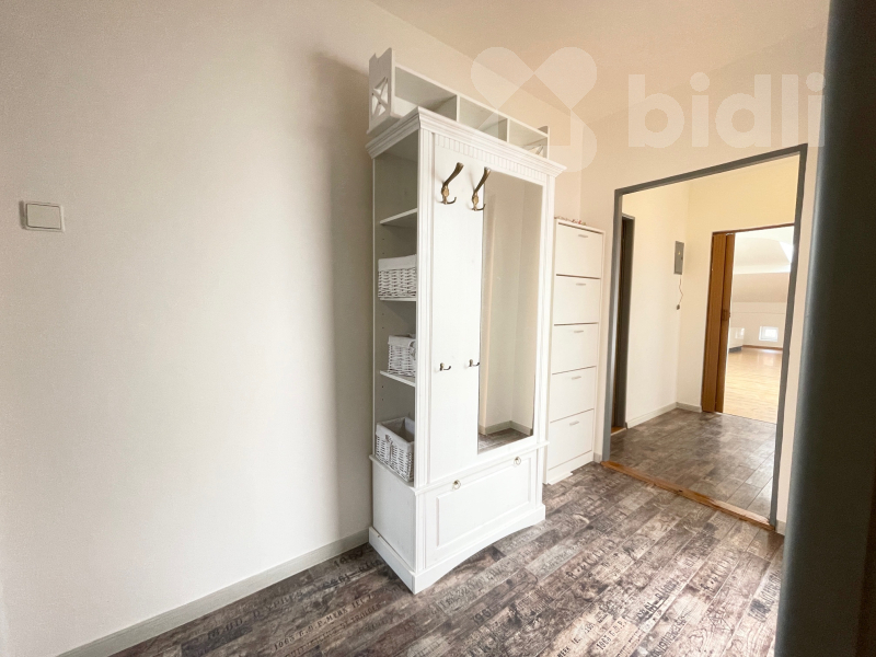 Podkrovní byt je po částečné rekonstrukci, působí velmi příjemně a nabízí dostatek prostoru jak pro pár, tak pro rodinu.