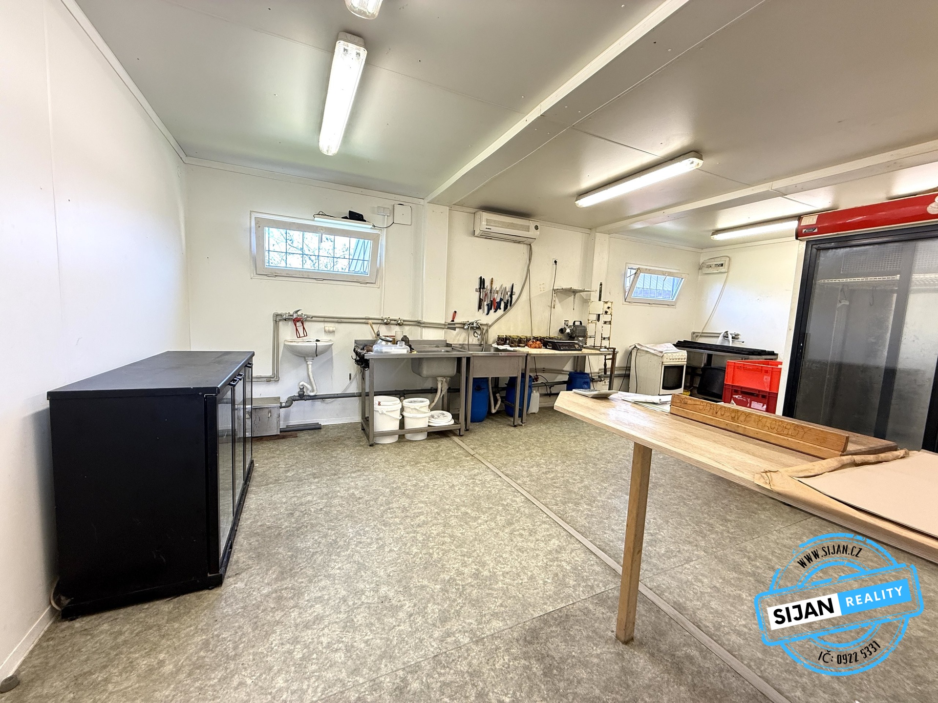 Objekt je tvořen sestavou 4 unimobuněk a dispozičně nabízí zádveří, hlavní výrobní prostor, kancelářské zázemí a kompletní sociální zařízení (sprcha, WC, šatna). Stav objektu je dobrý a umožňuje okamžité využití bez nutnosti větších investic.