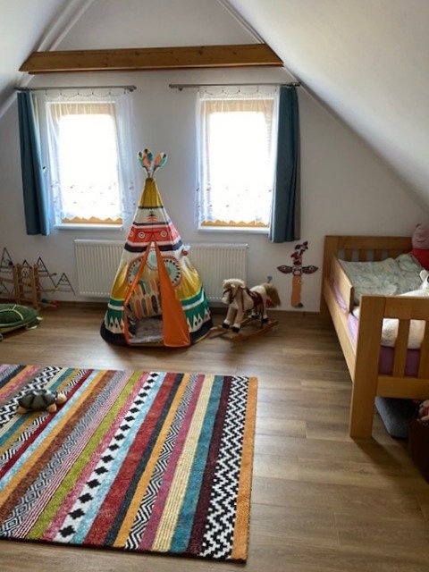Jedná se jednopodlažní, podsklepený objekt s vestavěným podkrovím. Do domu vstupujeme ze dvora po novém přístupovém schodišti, kterým se dostaneme do zádveří a odtud vejdeme do centrální chodby. Zde jsou přístupné schodiště jak do sklepních prostor, tak do obytného podkroví. Dispozice v 1. NP má obytnou plochu 81 m2 a sestává chodby, obývacího pokoje, kuchyně, ložnice, samostatného WC a koupelny s WC. Dominantou je obytný prostor s krbem, kuchyň s velkou kuchyňskou linkou do U s vestavěnými spotřebiči a jídelním koutem. Ve 2. NP navazuje na schodiště chodba, ze které se vchází do tří pokojů a prostorné koupelny s WC, zde je obytná plocha 88 m2. Tato nemovitost je vybavená luxusními a velmi komfortními materiály a prvky, díky čemuž si můžete okamžitě užívat nadstandardního bydlení bez nutnosti dalších investic. V podzemním podlaží (57 m2) jsou dva velké sklepy, chodba, technické zázemí, sklad zahradnického nářadí. Přístup je také přímo ze zahrady. Vytápění zajišťuje tepelné čerpadlo systémem vzduch-voda, kterým je také ohřívána teplá voda, topení je v 1.NP podlahové, ve 2.NP jsou instalována desková otopná tělesa. Všechna okna jsou dřevěná, zasklená izolačními trojskly, vnitřní dveře jsou dřevěné v obložkových zárubní. Dům je napojen na elektřinu, obecní vodovod a kanalizaci, na zahradě je také vrtaná studna využívaná k zalévání. Parkování je na zpevněné ploše vedle domu. Zahrada je upravená, poskytuje místo pro odpočinek v pergole (40 m2), kterou lze využít i jako letní kuchyni (zavedena el., voda a odpady) a kde si můžete užít klidný čas s rodinou a přáteli. Na zahradě je dále skleník, vyvýšené záhony, mladé ovocné stromy jabloně a mandloň. Obec Bubovice leží v chráněné krajinné oblasti Českého krasu, asi 7 km východně od Berouna mezi Loděnicemi a Karlštejnem. Okolí je obklopené přírodou, ideální pro procházky, cyklistiku i relax. Veškerá občanská vybavenost je v Loděnicích, kde je i nájezd na dálnici D5. Pro více informací či sjednání termínu prohlídky mě neváhejte kontaktovat.
