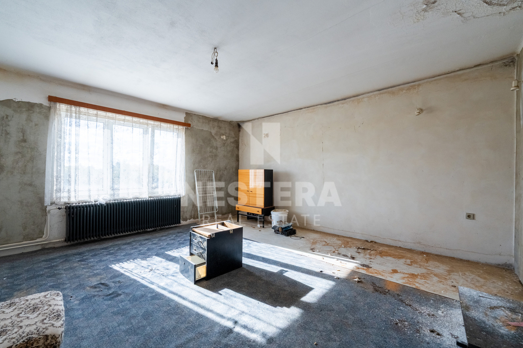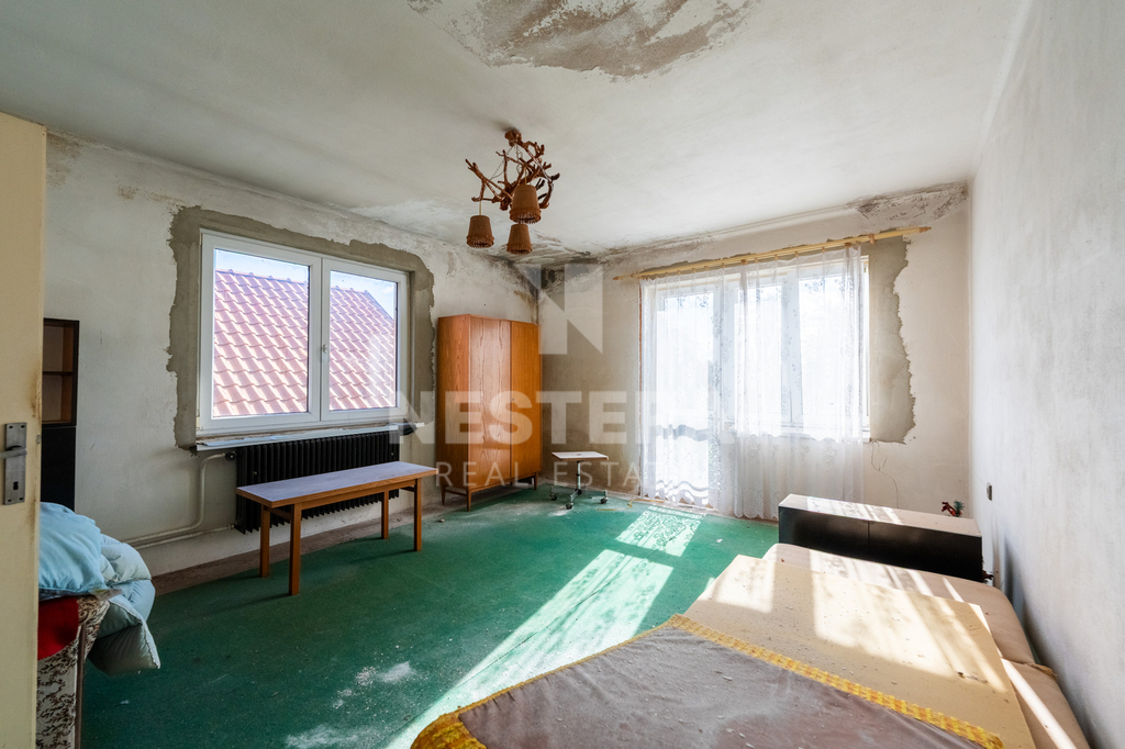 Interiér domu je světlý a rozhodně v sobě skrývá potenciál pro vytvoření pěkného a prakticky řešeného bydlení. Všechno zde čeká na nové nápady a moderní pojetí, které propojí původní charakter domu s dnešním stylem života.