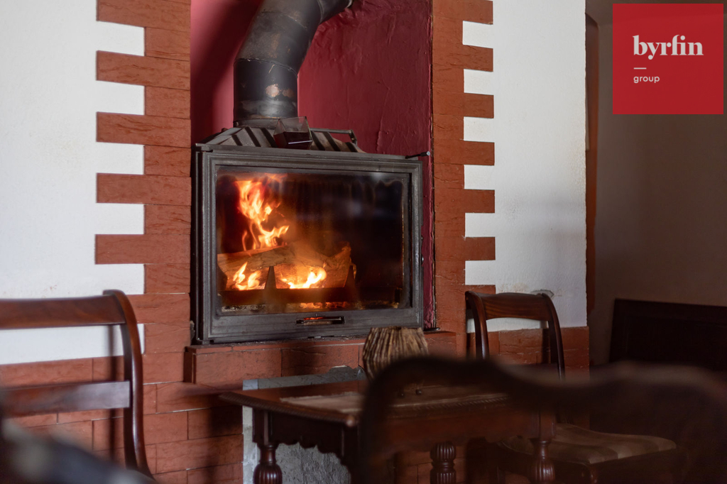 Topení je řešeno krbem v přízemí, elektrickými přímotopy, v prvním patře jsou kamna.