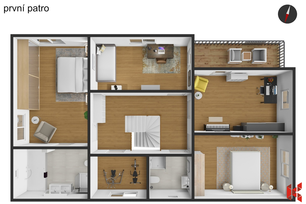 ✔ Balkon v 1. patře
