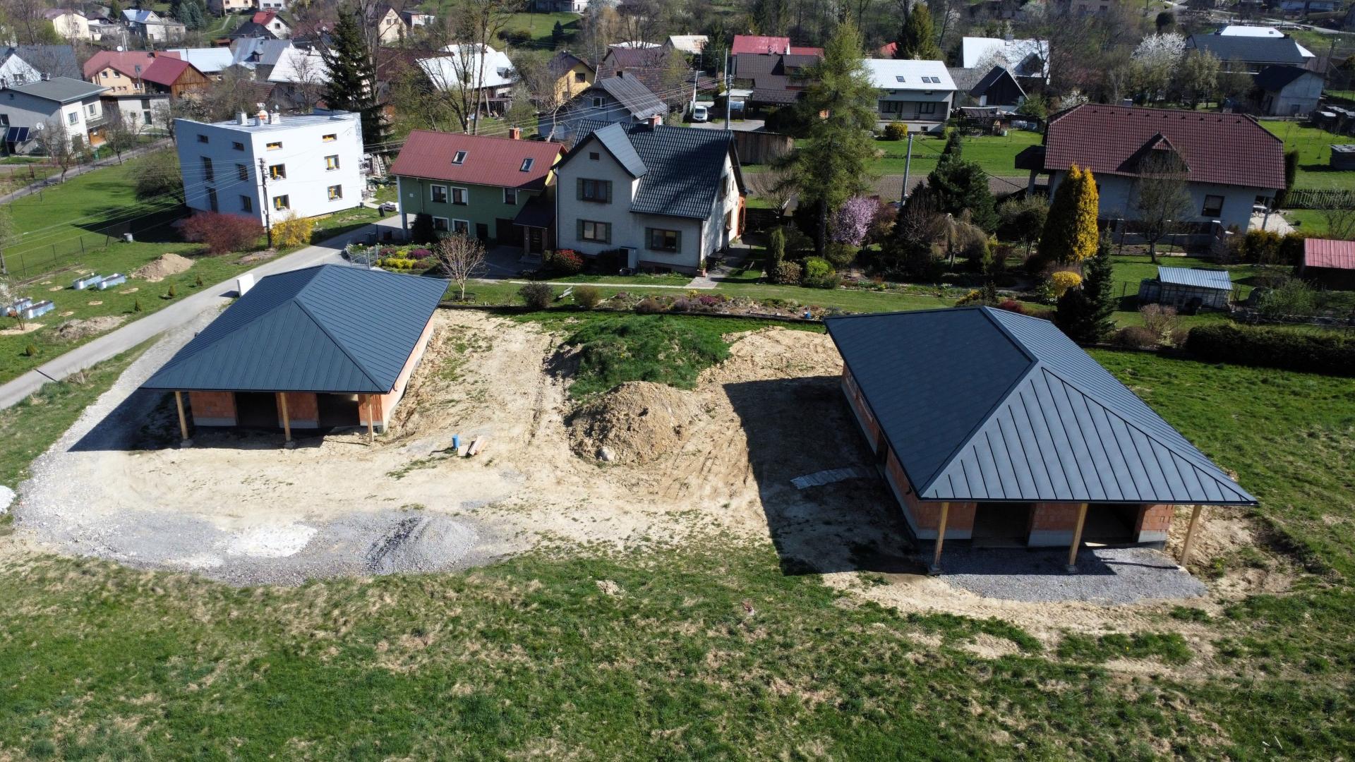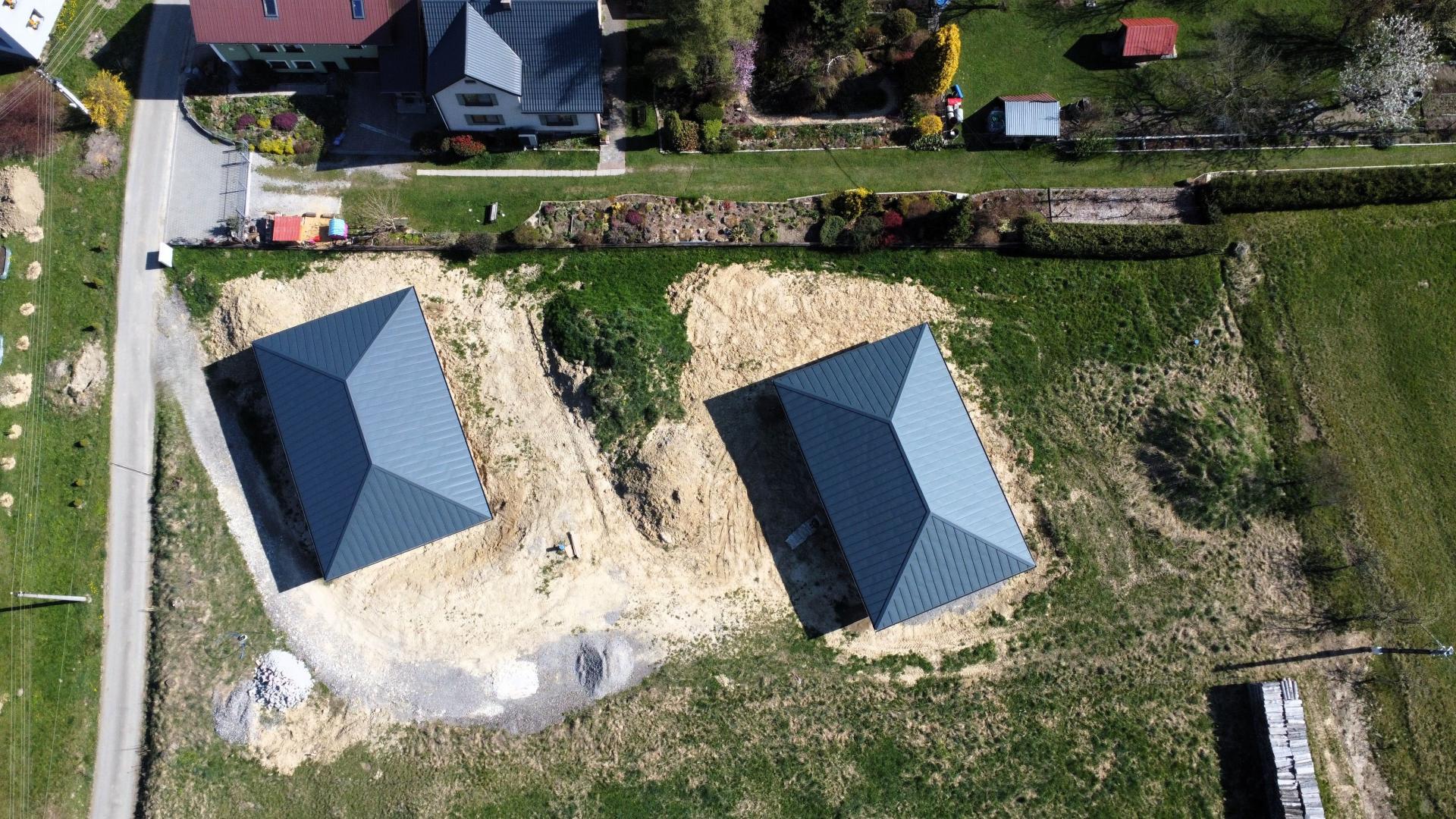 Příjezd k rodinným domům je řešen po obecní komunikaci a dále po soukromém pozemku, na kterém budou mít noví vlastníci spoluvlastnický podíl o velikosti 1/2 pozemku o výměře 112 m2.