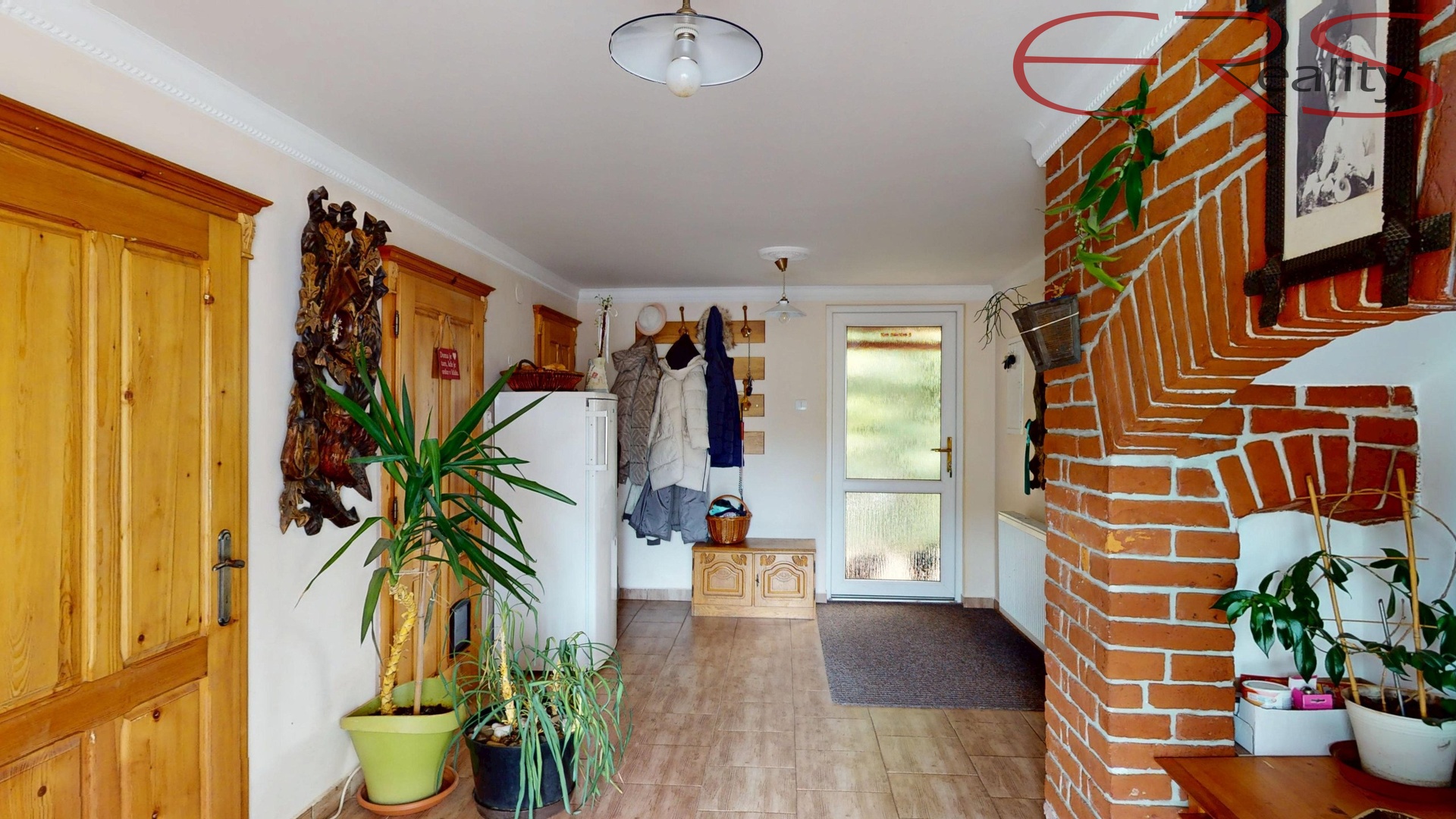 Uvnitř najdete podlahové vytápění, tepelné čerpadlo, krbová kamna s výměníkem a solární panely pro ohřev vody. Jinými slovy, dům umí být útulný, úsporný a technicky chytrý zároveň. Voda je řešena jak ze studny, tak z veřejného vodovodu, takže ani v tomto směru nejste odkázáni na nálady vesmíru.