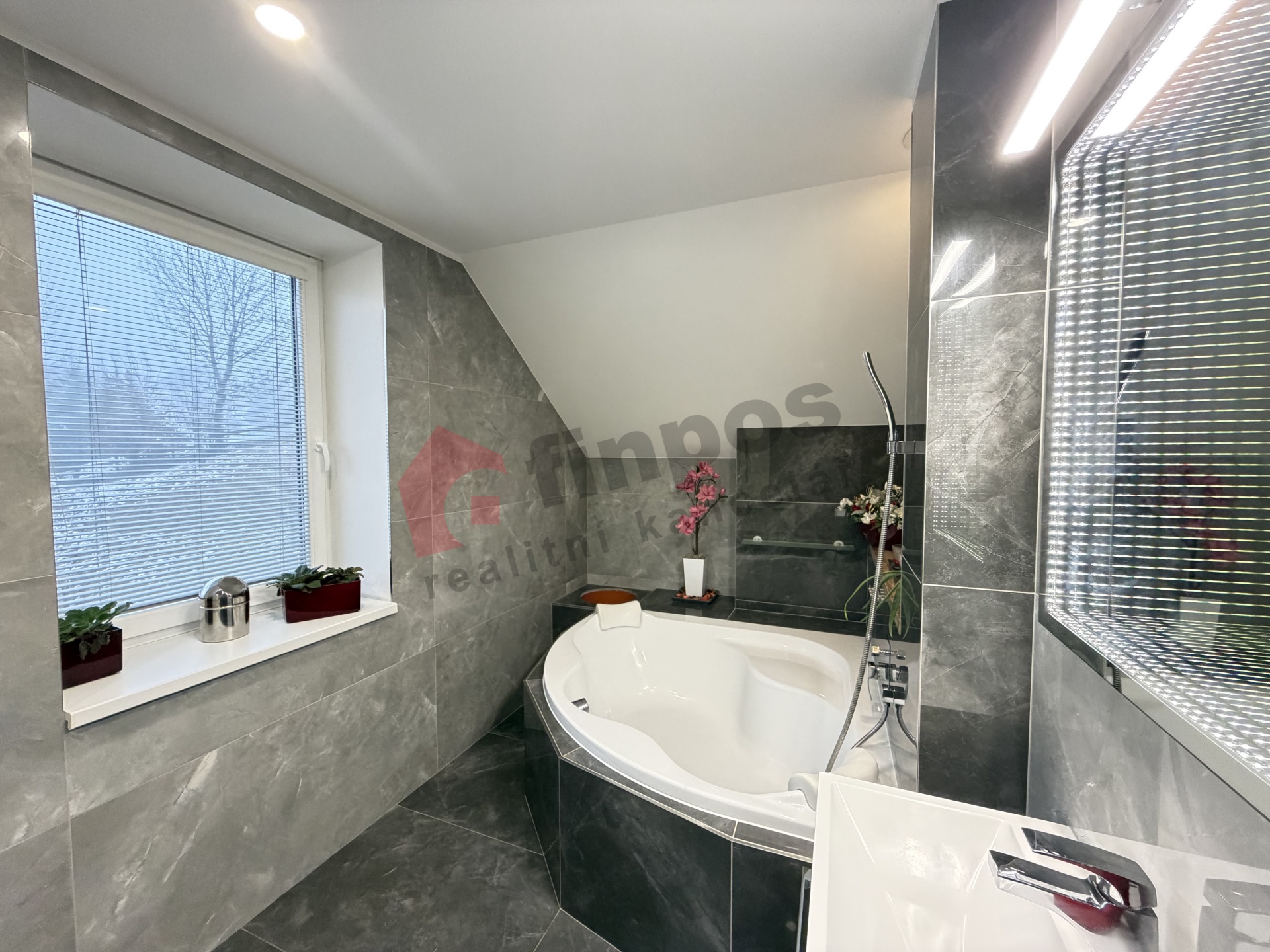 Dominantou je zimní zahrada, která je celoročně využitelná díky automatickému vytápění a klimatizaci. Ráno káva v teple zimního slunce, večer sklenka vína s výhledem do zahrady. Pohodlí doplňuje podlahové vytápění, klimatizace a fotovoltaika, které zajišťují komfort i úsporný provoz.