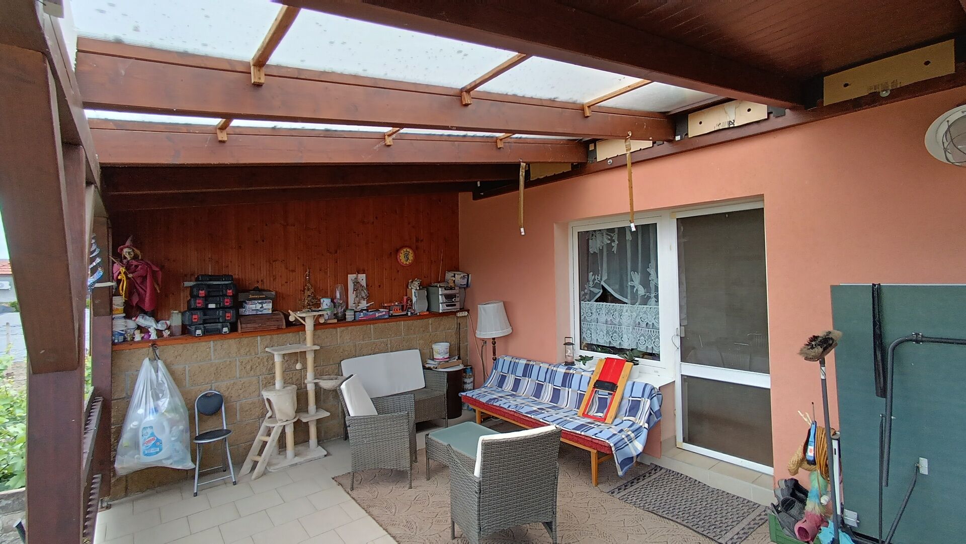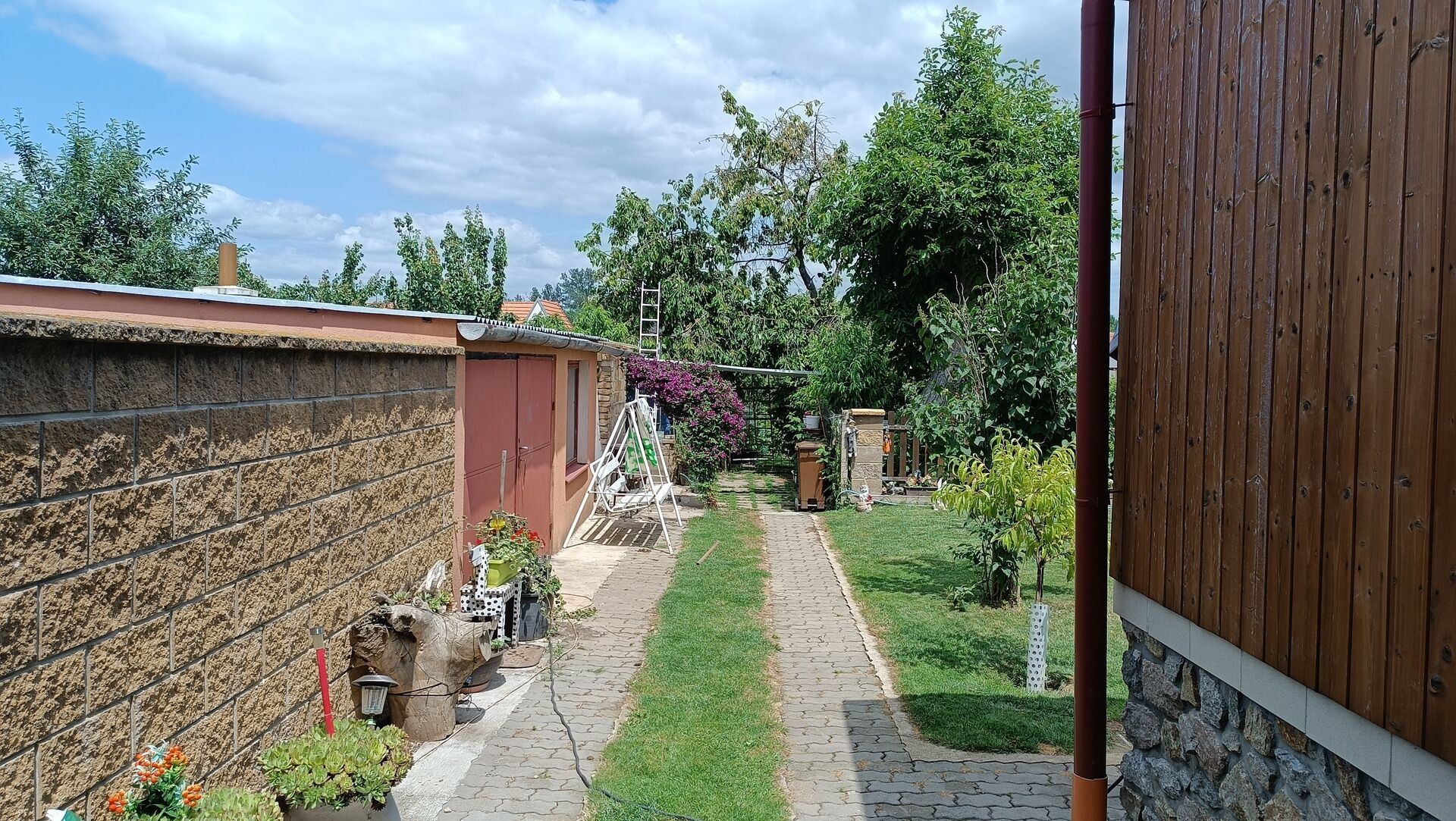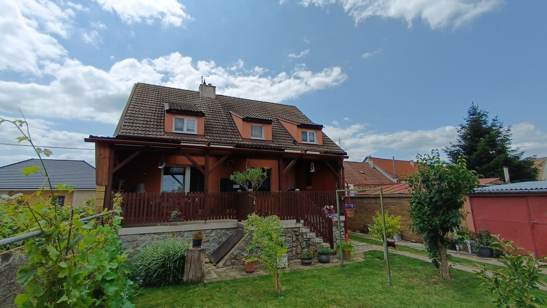 Za domem se nachází okrasná i užitková zahrada, V nádvoří potom vedlejší zděné stavby (technické prostory/sklad). Celková plocha pozemku činí 828m2, obytná plocha domu 200m2. Příjezd k objektu po zpevněné obecní komunikaci. Dům napojen na elektřinu 220/380 V, obecní vodovod, kanalizaci, vytápění plynovým kondenzačním kotlem. V zahradě vlastní studna na zavlažování. Podlahy betonové, povrch PVC, koberce. Dům je zateplen 15cm polystyrenu s fasádou, plastová okna. Střecha s ocelovým krovem, zděné podhledy, v domě garáž. Dům je kompletně podsklepen (rozsáhlý skladovací prostor). Objekt kolaudován v r. 1995 (k dispozici kompletní projektová dokumentace), nyní v udržovaném technickém stavu, ihned obyvatelný.