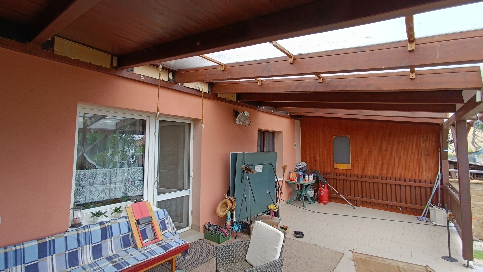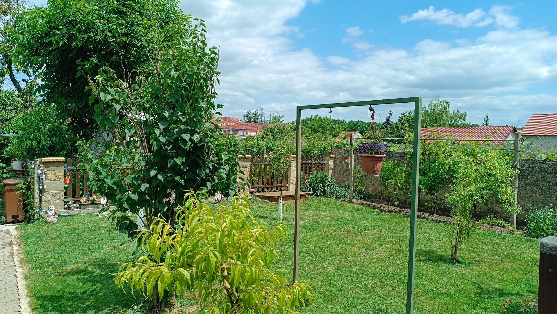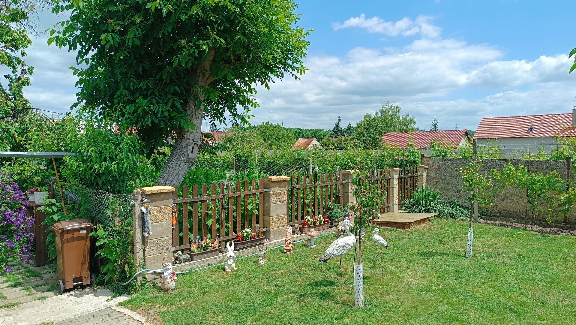 Za domem se nachází okrasná i užitková zahrada, V nádvoří potom vedlejší zděné stavby (technické prostory/sklad). Celková plocha pozemku činí 828m2, obytná plocha domu 200m2. Příjezd k objektu po zpevněné obecní komunikaci. Dům napojen na elektřinu 220/380 V, obecní vodovod, kanalizaci, vytápění plynovým kondenzačním kotlem. V zahradě vlastní studna na zavlažování. Podlahy betonové, povrch PVC, koberce. Dům je zateplen 15cm polystyrenu s fasádou, plastová okna. Střecha s ocelovým krovem, zděné podhledy, v domě garáž. Dům je kompletně podsklepen (rozsáhlý skladovací prostor). Objekt kolaudován v r. 1995 (k dispozici kompletní projektová dokumentace), nyní v udržovaném technickém stavu, ihned obyvatelný.